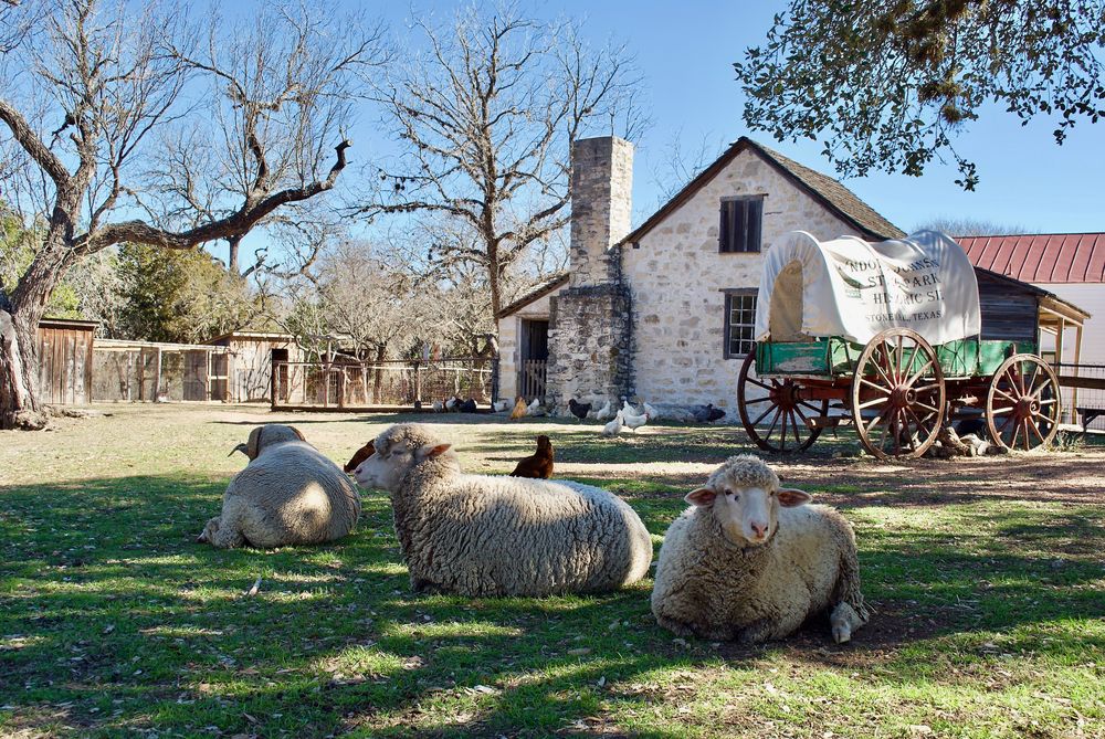 リンドン・B・ジョンソン州立公園および史跡の羊と屋根付きワゴン