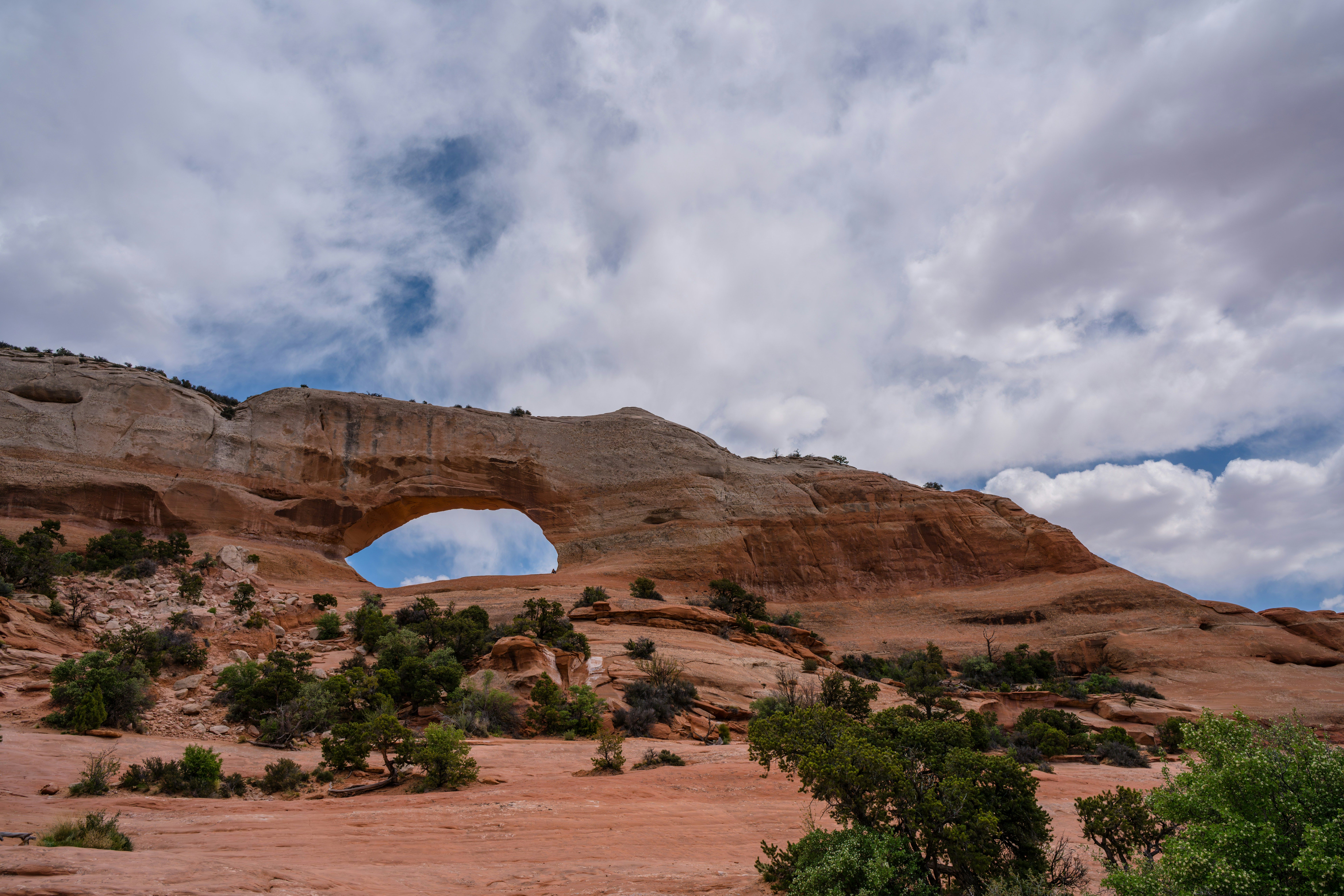 街から24マイル、高さ46フィート、幅91フィートウィルソンアーチ、米国のルート191からわずか5分のところに、年間いつでも訪れることができるエリアのもう1つのエントラダ砂岩のアトラクションがあります。ドライバレーに住んでいた地元の先駆者であるジョー・ウィルソンに敬意を表して命名されました。