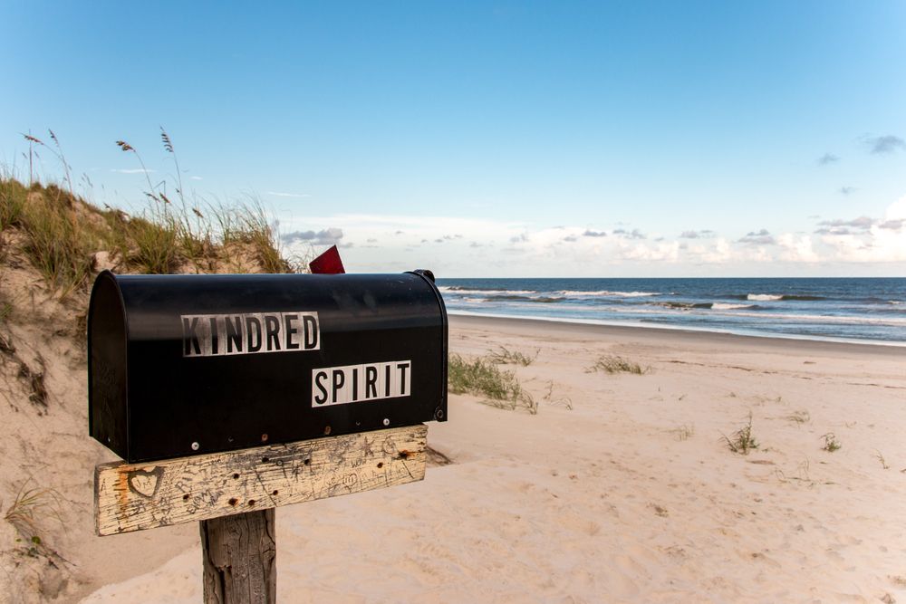 米国ノースカロライナ州バード島のビーチにあるキンドレッド・スピリットの郵便ポスト