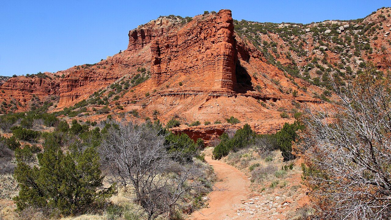 Caprock Canyons State Park頑丈な荒野体験を提供し、カラフルな峡谷と掃引平野の広大な景色を眺めることができます。アッパーキャニオンとロワーキャニオンループトレイル野生の馬のキャンプエリアから始まり、いくつかの小川と川底を横断します。絵のような散歩は、アッパーキャニオントレイルに沿ってハイカーをファーンケーブまで連れて行きます。