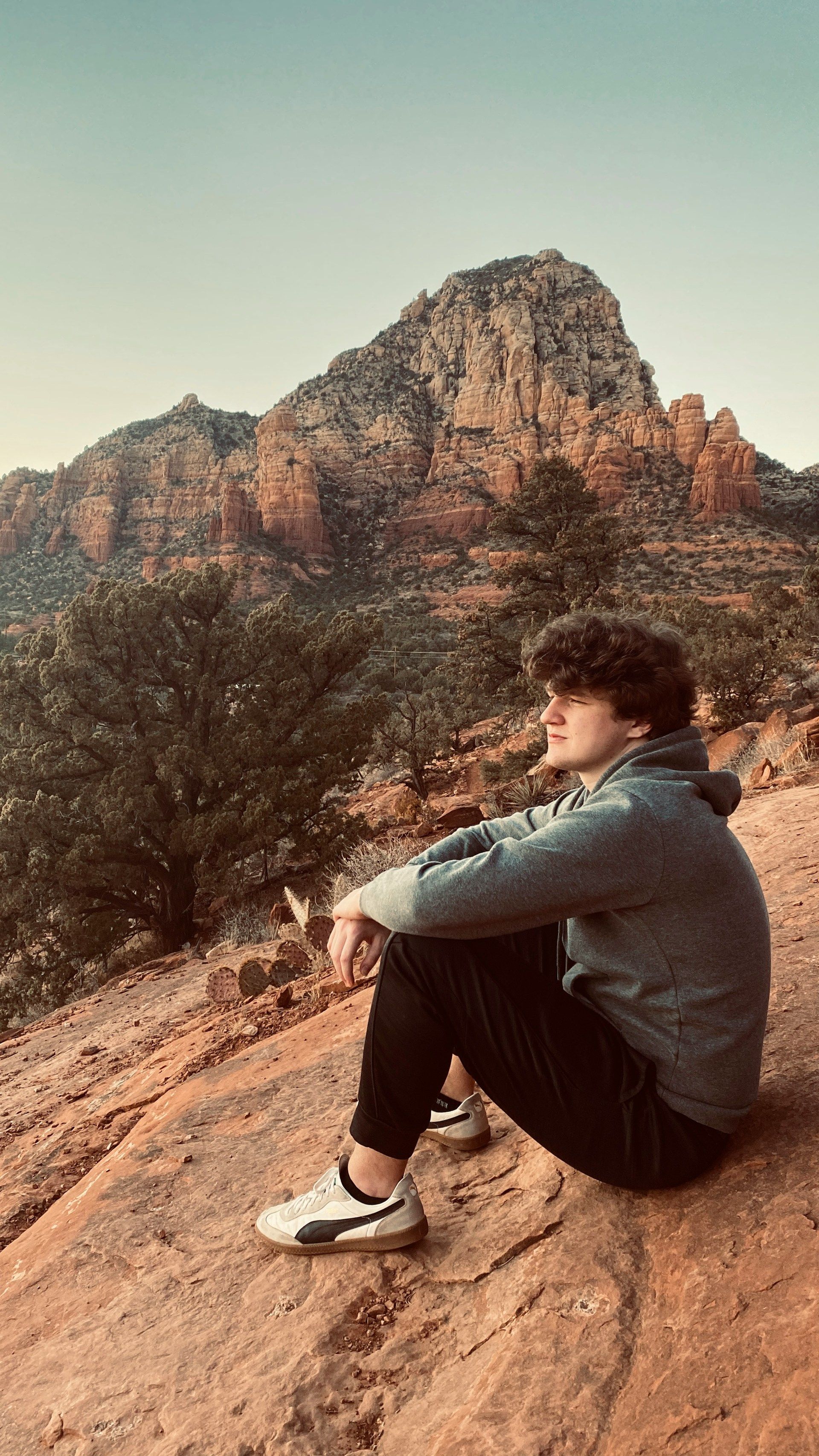 米国セドナのココニノ国有森林で周囲の景色を眺めるハイカー