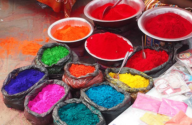ホーリー祭で販売されるカラー。写真提供: エレン・ターナー
