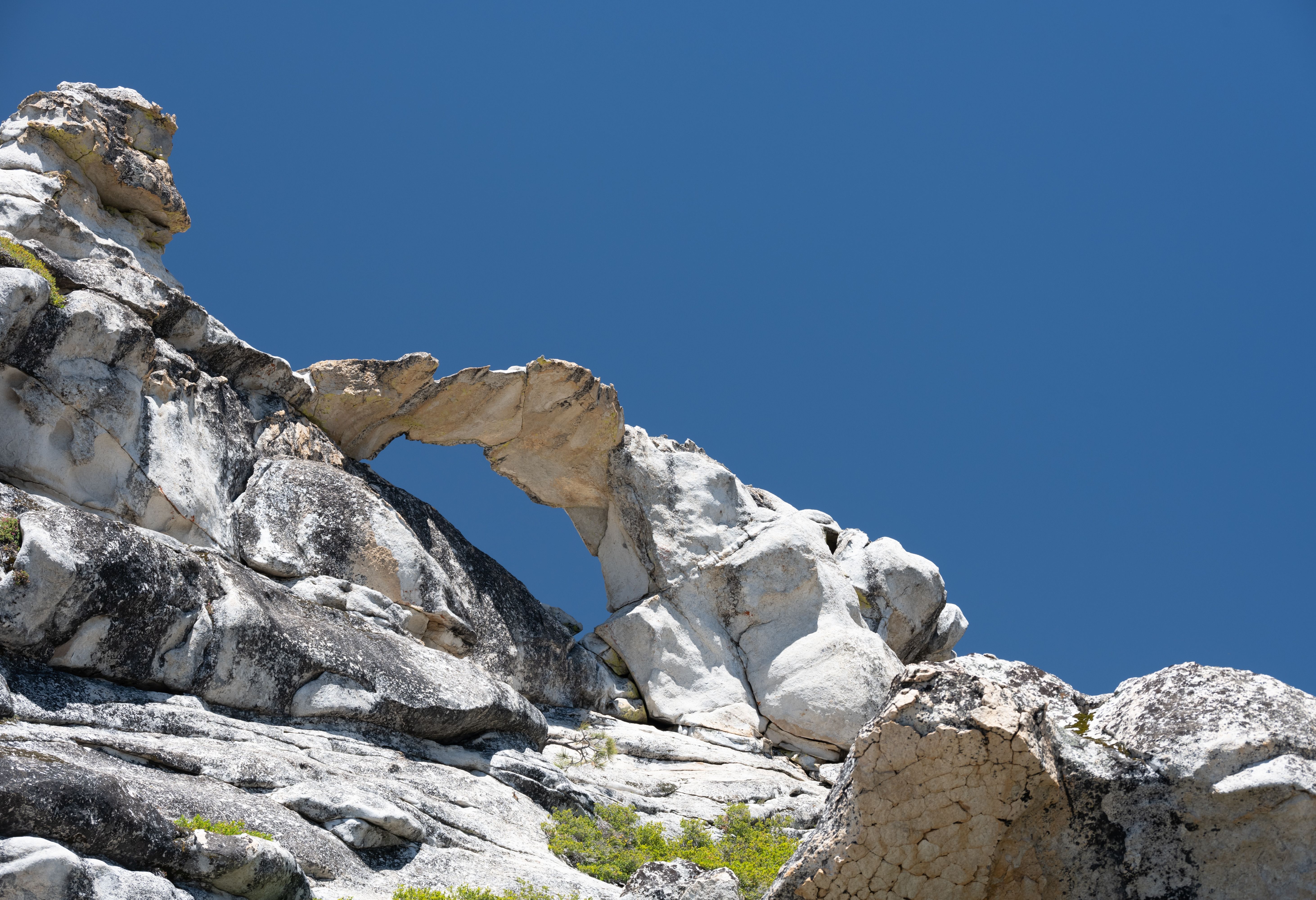 ヨセミテのインディアン ロック アーチは目を見張るものがあります。風化と浸食の組み合わせによって形成され、柔らかい岩が侵食され、硬い花崗岩がそのまま残されてアーチが形成されました。