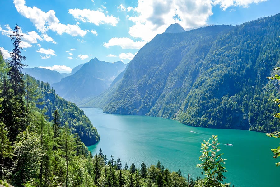 Königsseeは、あなたが見逃したくないSalzburgからの日帰り旅行です!いくつかの豪華な高山の山の間に位置するエメラルドグリーン湖は、バイエルン地域で最もきれいで深い湖であり、このため、地元の人々や観光客の間で人気があります。やるべきことがたくさんあるので、ここで一日中簡単に過ごすことができます。近くの山々のハイキングから、滝を追いかけてから、人気のある電気ボートに乗ってサラトやオーバーシーに行くことまで、誰にとっても何かがあります。正直に言って、これは私たちが訪れた中で最も美しい湖の1つであり、それがザルツブルクからの私たちのお気に入りの日帰り旅行の1つである理由です!