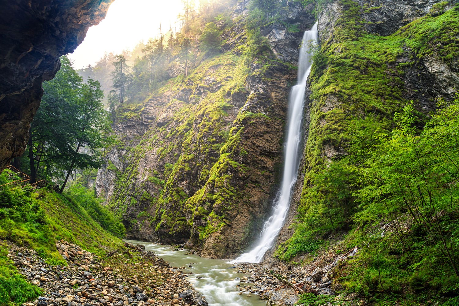多くの人がアルプスで最もきれいな峡谷であると考えるものを歩いていると、900フィートの高さの峡谷の壁、ro音の滝、透明な水に消費されます。狭い峡谷の長さは約1.5kmで、40mのシングルドロップ滝で終わります。滝にはいくつかのピクニックテーブルがありますので、滝のそばの風光明媚なピクニックのために食べ物を持ってきてください。いずれにせよ、アルプスで最も長くて最も深いアクセスしやすい野生の渓谷を訪れることを逃したくありません。