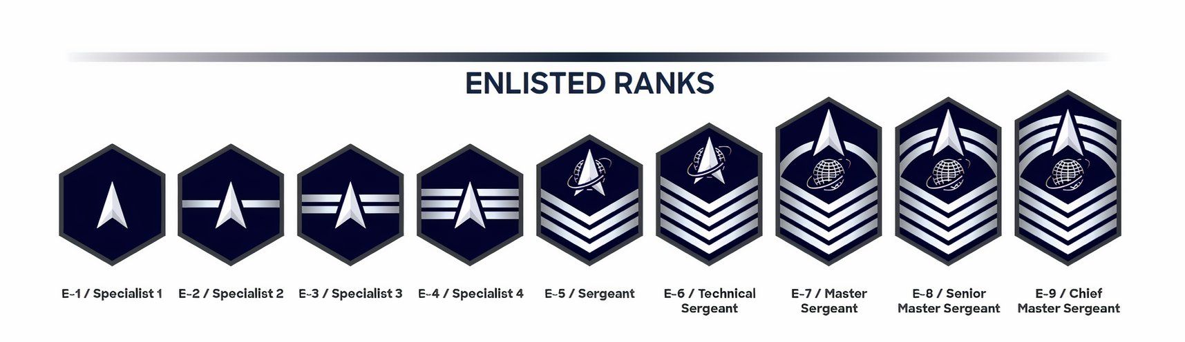 E-1 は最も基本的な宇宙軍のランクであり、基礎訓練を完了すると達成されます。優秀な新入社員の中には、基礎訓練を E-2 または E-3 として卒業する人もいます。しかし、これは60人から70人の訓練小隊のうち卒業生は5人以下だろう。