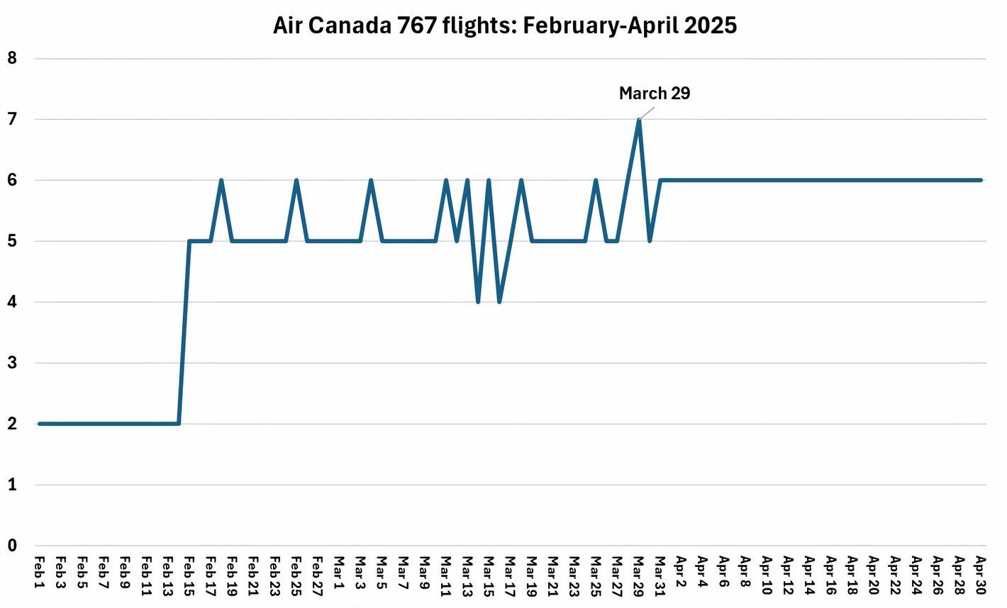 3月29日は、エア・カナダを含む北部航空会社がIATAスロットシーズンに基づいて夏スケジュールに切り替える前日だ。その日、エアカナダは計画しています767便7便: