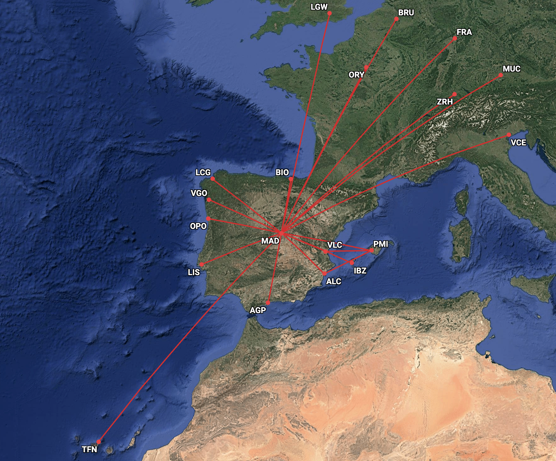 および他のスペイン航空会社およびそのグループ航空会社、エア ヨーロッパは、国内およびスペインからの重要な接続プロバイダーでした。