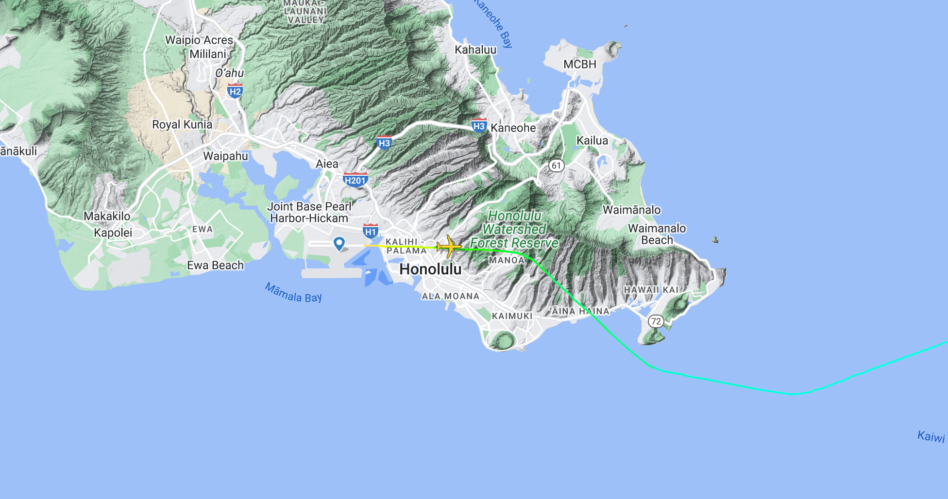 水曜日、ホノルル近郊で異例の離陸経路を実行した。乗務員は出発時にすぐに右旋回せず、指示を無視して機体を真っ直ぐ東に向けて飛行させた。