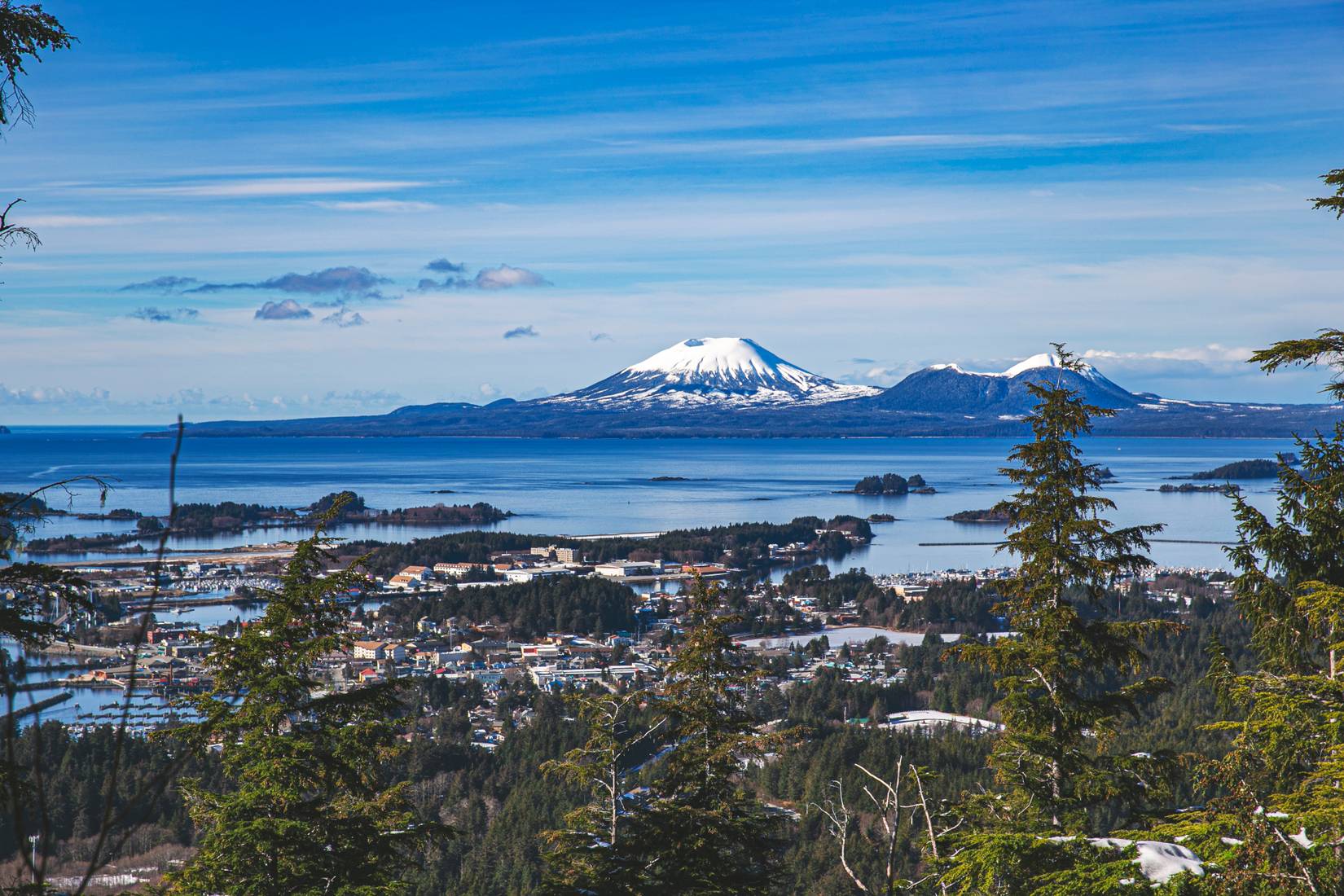 エッジカンブ山を背景にしたアラスカ州シトカ