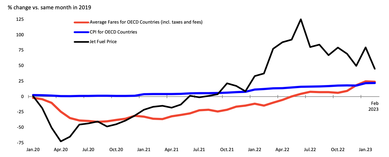 ただし、航空運賃の増加率はインフレ率を上回っています。