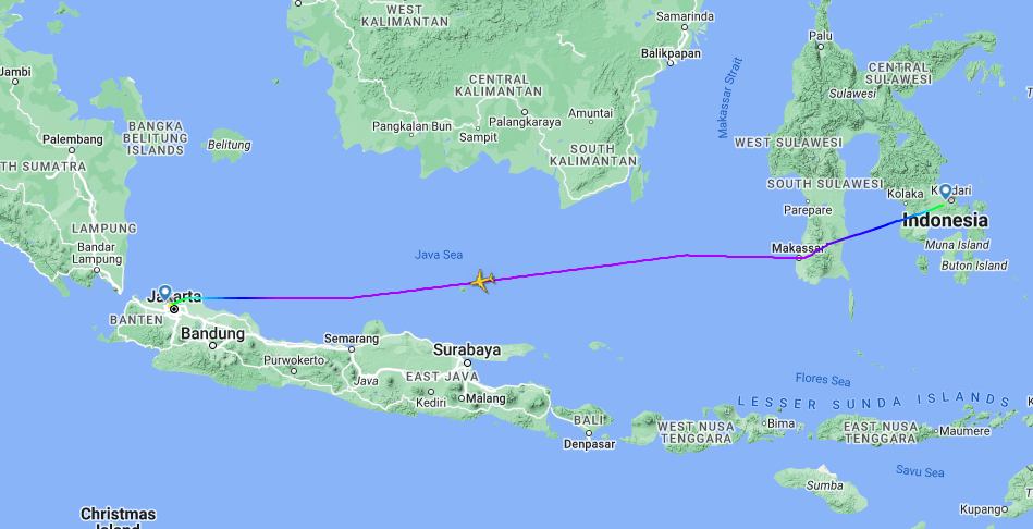 153人の乗客を乗せてケンダリ(KDI)のハルオレオ国際空港を現地時間07時48分に出発し、ジャカルタに向けて飛行し、巡航高度約36,000フィートに達した。巡航高度に達した後、パイロットはヘッドセットを外したようで、コックピットのスピーカーの音量が大きくなった。その後、機長はリラックスして休憩する許可を求め、副操縦士は許可した。