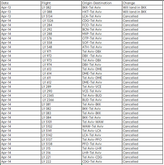 エルアル市はまた、乗客に対し、指示があるまで空港に到着しないよう勧告している。さらに、エルアル航空は、4 月 20 日までに出発するすべてのフライトのお客様に対して次のような手当を行っています。