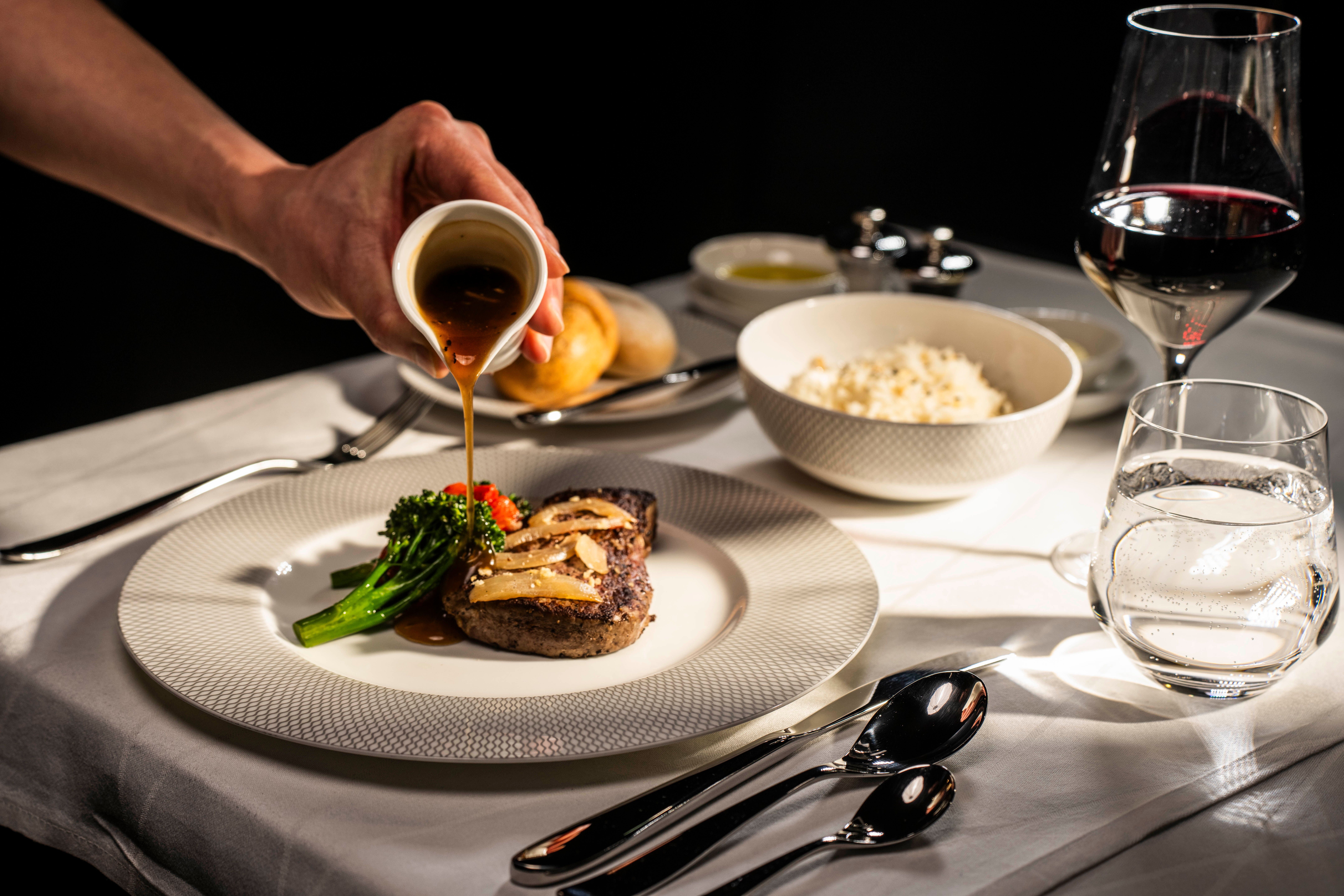 この取り組みの一環としてブリティッシュ・エアウェイズが提供している料理は、幸運と繁栄を意味すると言われています。上の写真のように、ヒースロー空港の乗客1つ世界創設メンバーの豪華ファーストクラス長距離機内では、「黒胡椒風味の牛肉フィレ肉と中国七味ブロッコリーニ添え」が提供される。