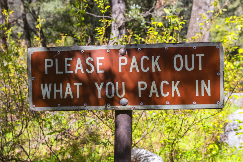 カリフォルニア国有林にある「詰めたものはまとめて出してください」というゴミ警告標識クレジット: Shutterstock