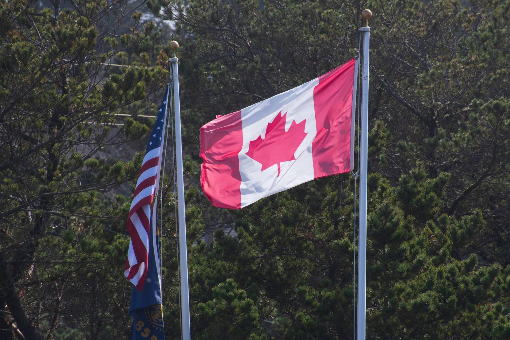 アメリカの国旗とカナダの国旗は、アメリカ合衆国ワシントン州シアトルで見られます。