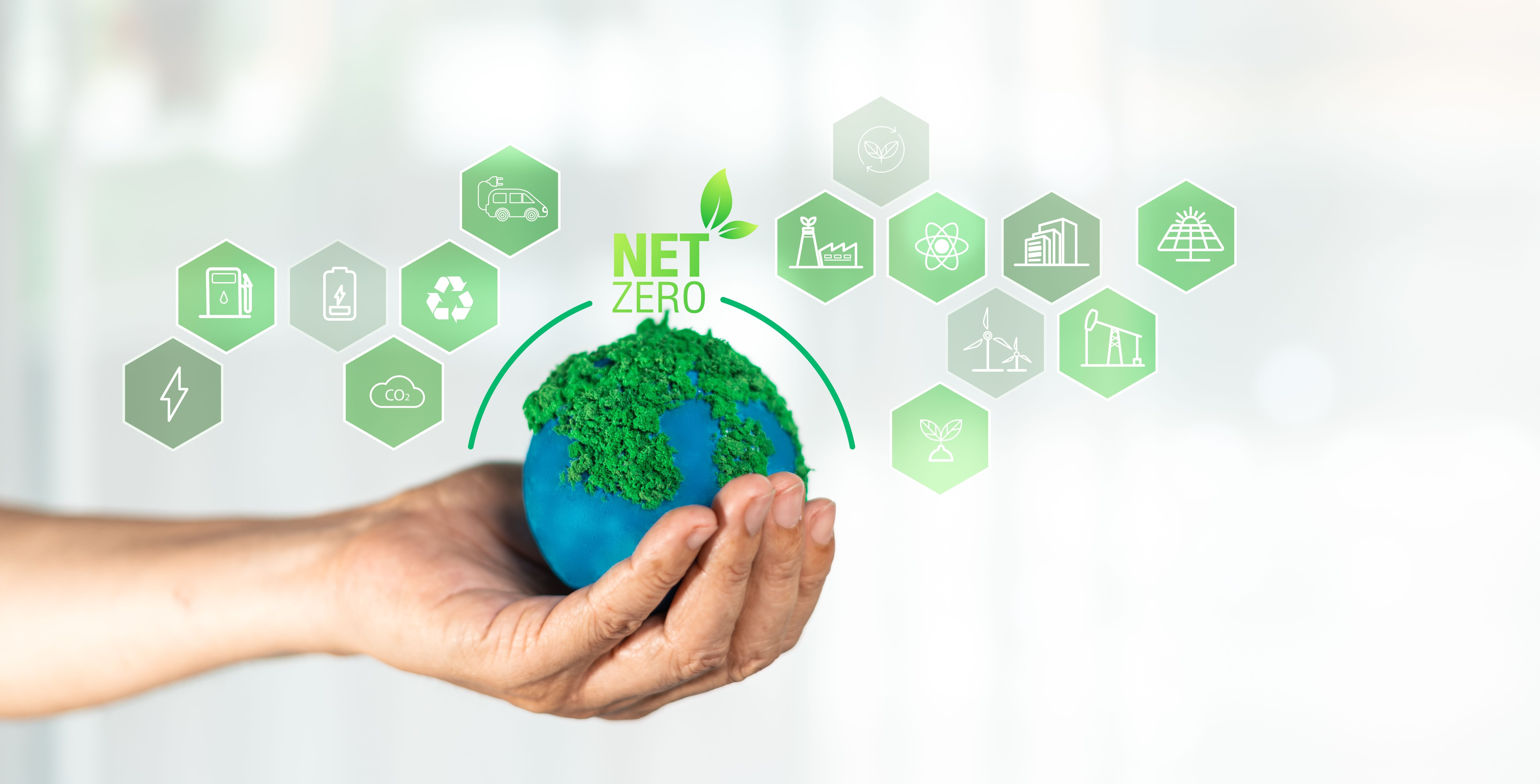 気候変動を減らすためにネットゼロとマークされた地球儀を手で揺さぶる