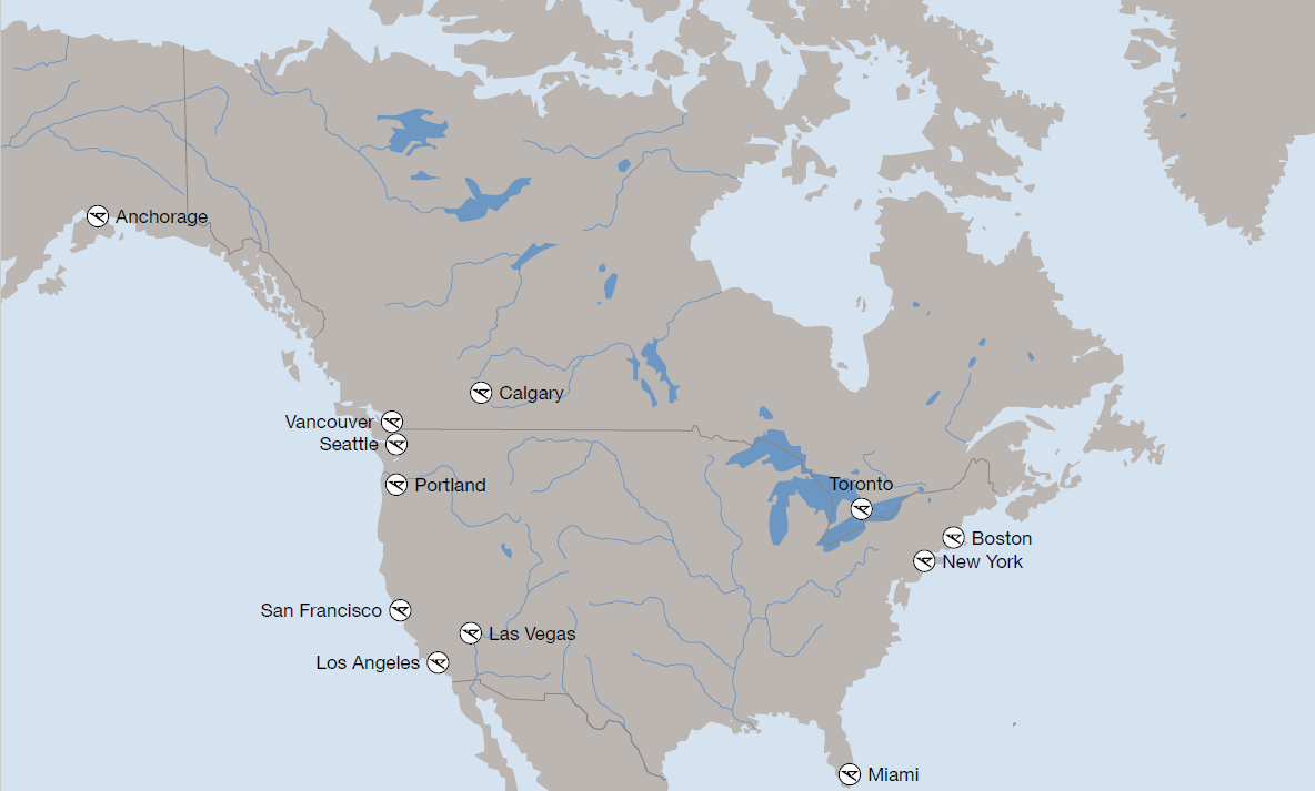 カナダでは、航空会社は以下の目的地に毎日サービスを提供します。