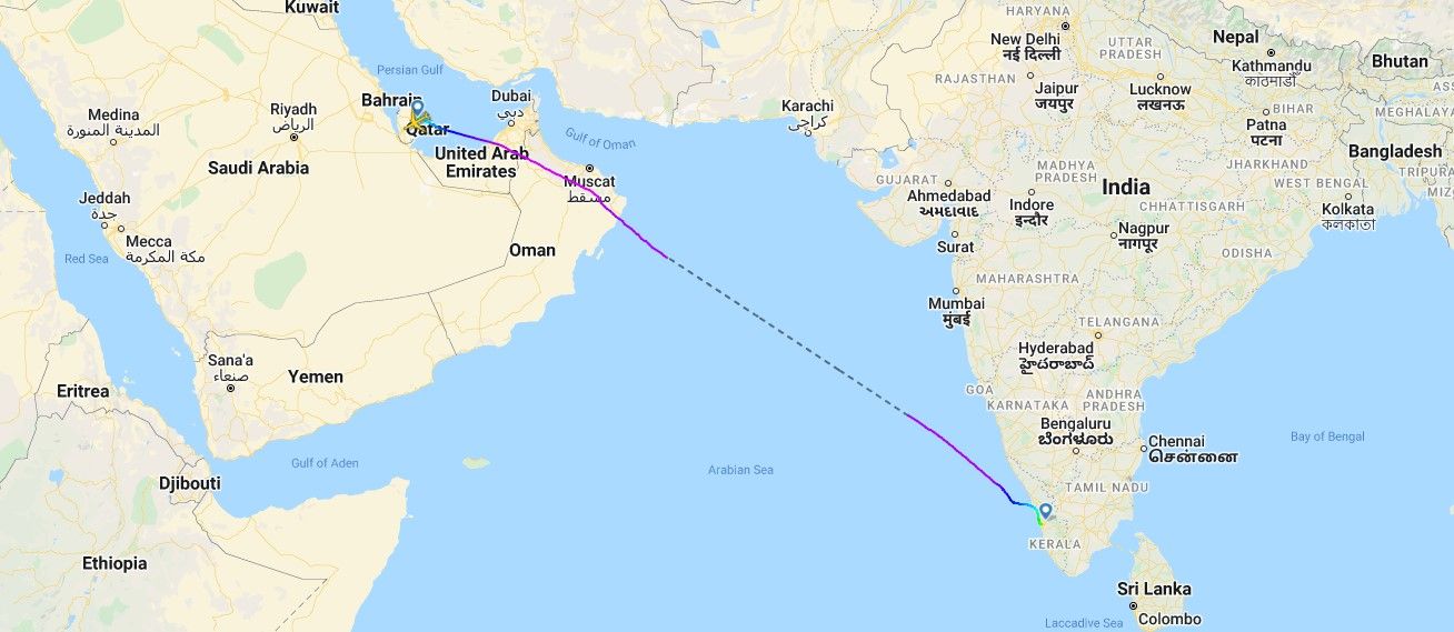 Jet Airways Flight 9W555は、カタールのドーハハマド国際空港(DOH)で発信された予定されている国際旅客便でした。その目的地は、ケララ州南部のコチ市にサービスを提供するコーチン国際空港(COK)でした。今日、この廊下はエアインディア、エアインディアエクスプレス、インディゴ、カタール航空によって奪われており、フライトの期間は約4時間です。