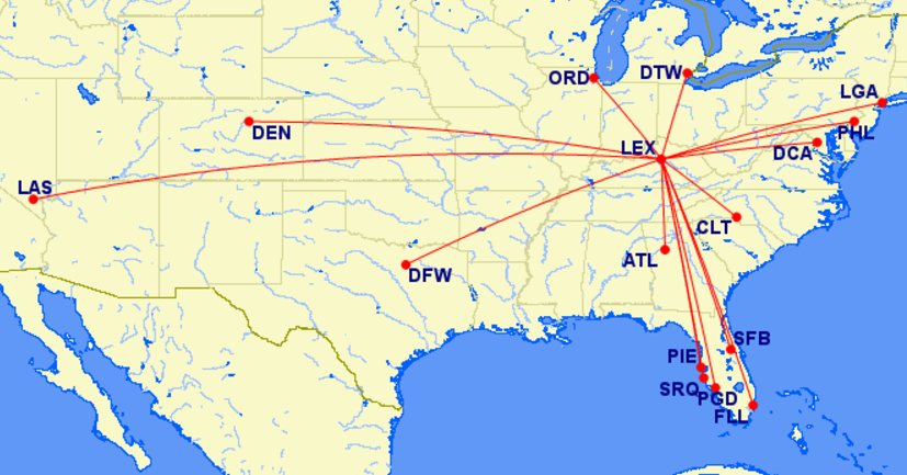 ラガーディア線の運航再開により、デルタ航空はニューヨーク都市圏への航空便を独占することとなり、他の航空会社がニューヨークへ運航することはなくなります。 LEX で活動している他の航空会社: