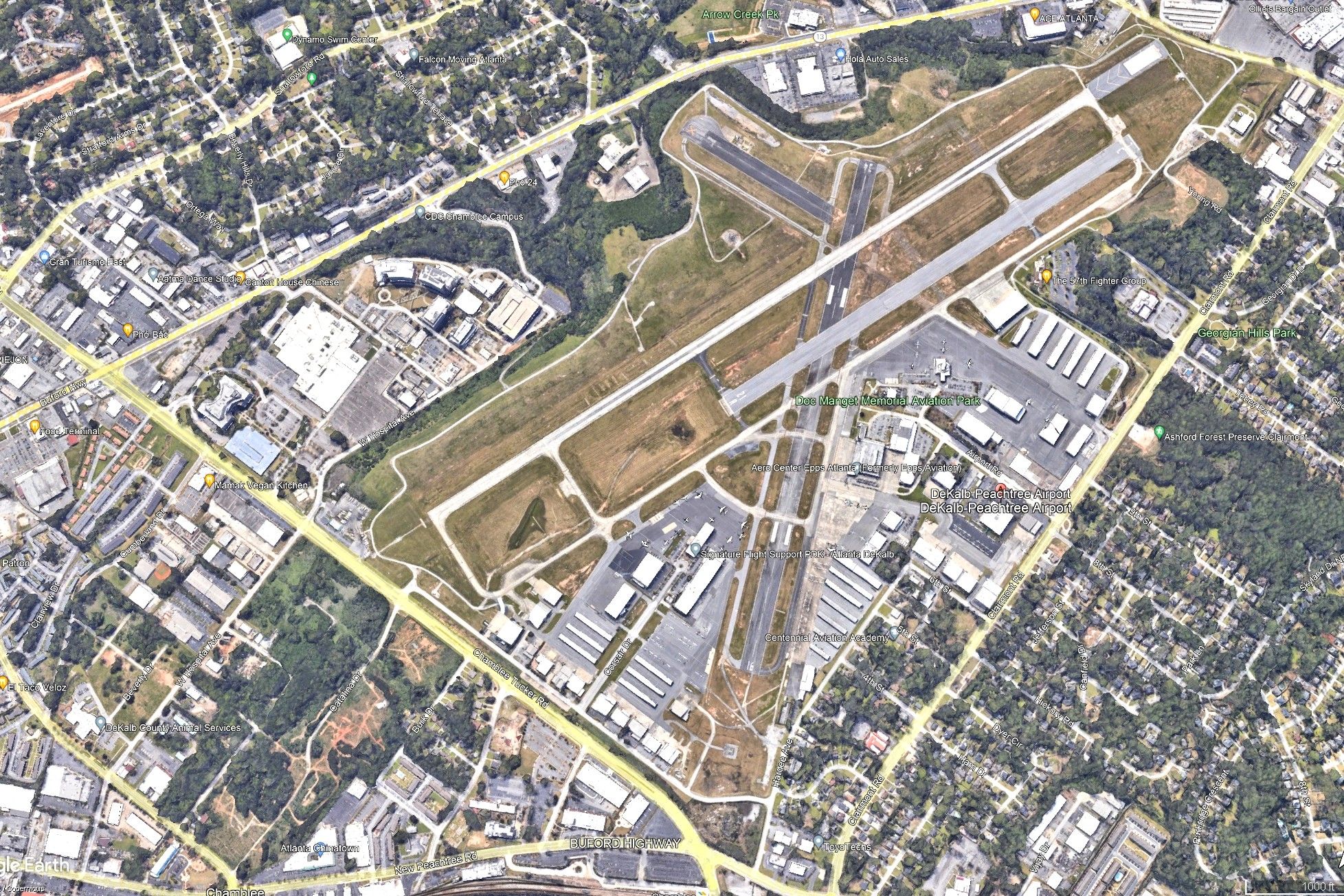 ダウンタウンから西に 11 マイルに位置するこの選択肢は、ATL からわずか数マイルの距離にあり、クラス B 空域の下とそのすぐ近くに存在するため、商業化される可能性は最も低いです。さらに、空港は高速道路とチャタフーチー川に囲まれているため、拡張の余地はほとんどありません。