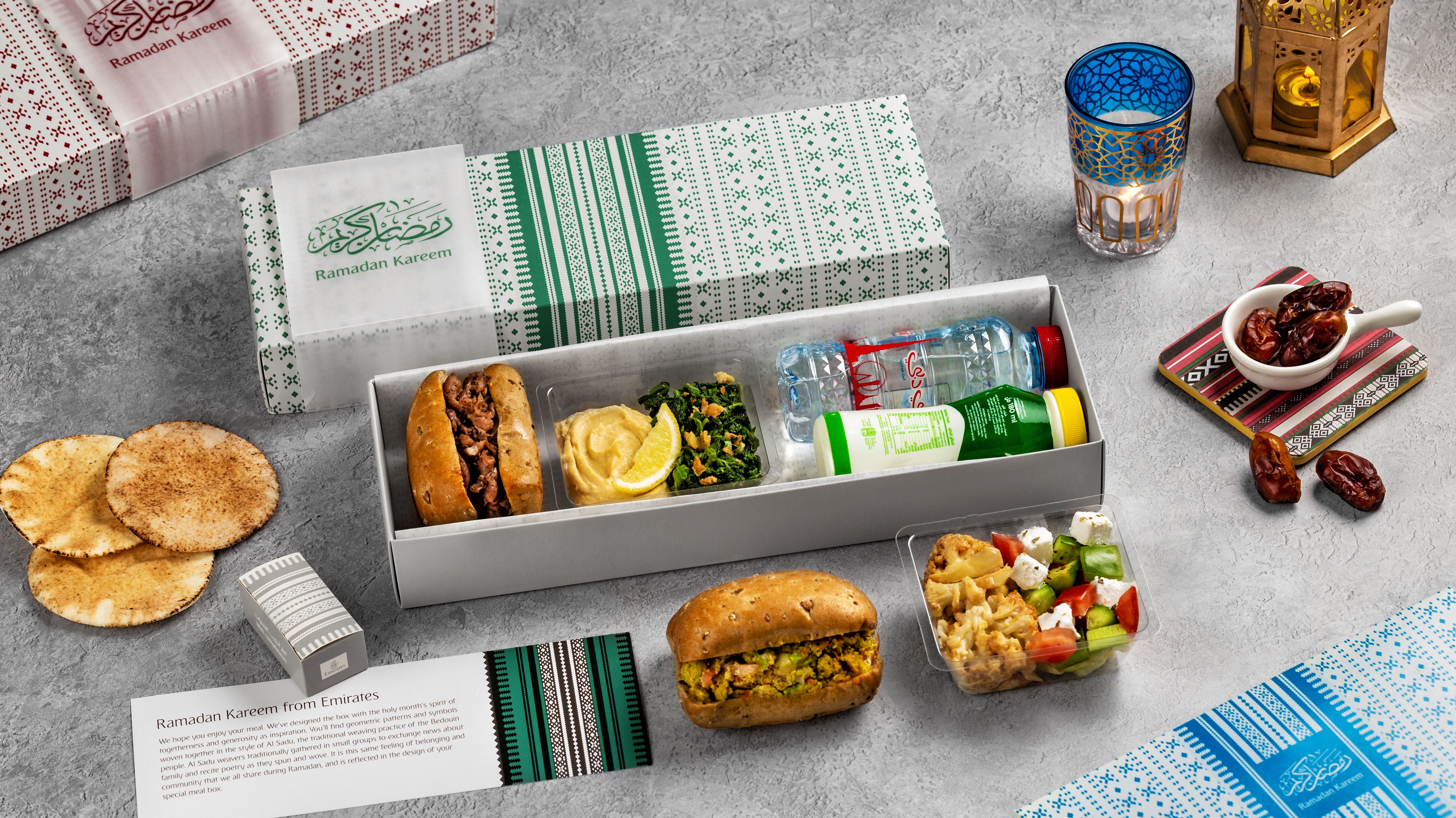 エミレーツはすでに、ラマダンの断食を観察する乗客のためのいくつかのフライトで特別なメニューを提供しています。航空会社は、船内と搭乗門の両方で乗客を断食するために食事箱を配っていますが、ラウンジはレンズ豆のスープだけでなく、熱いと冷たいアラビア語のメゼのセレクションを提供しています。