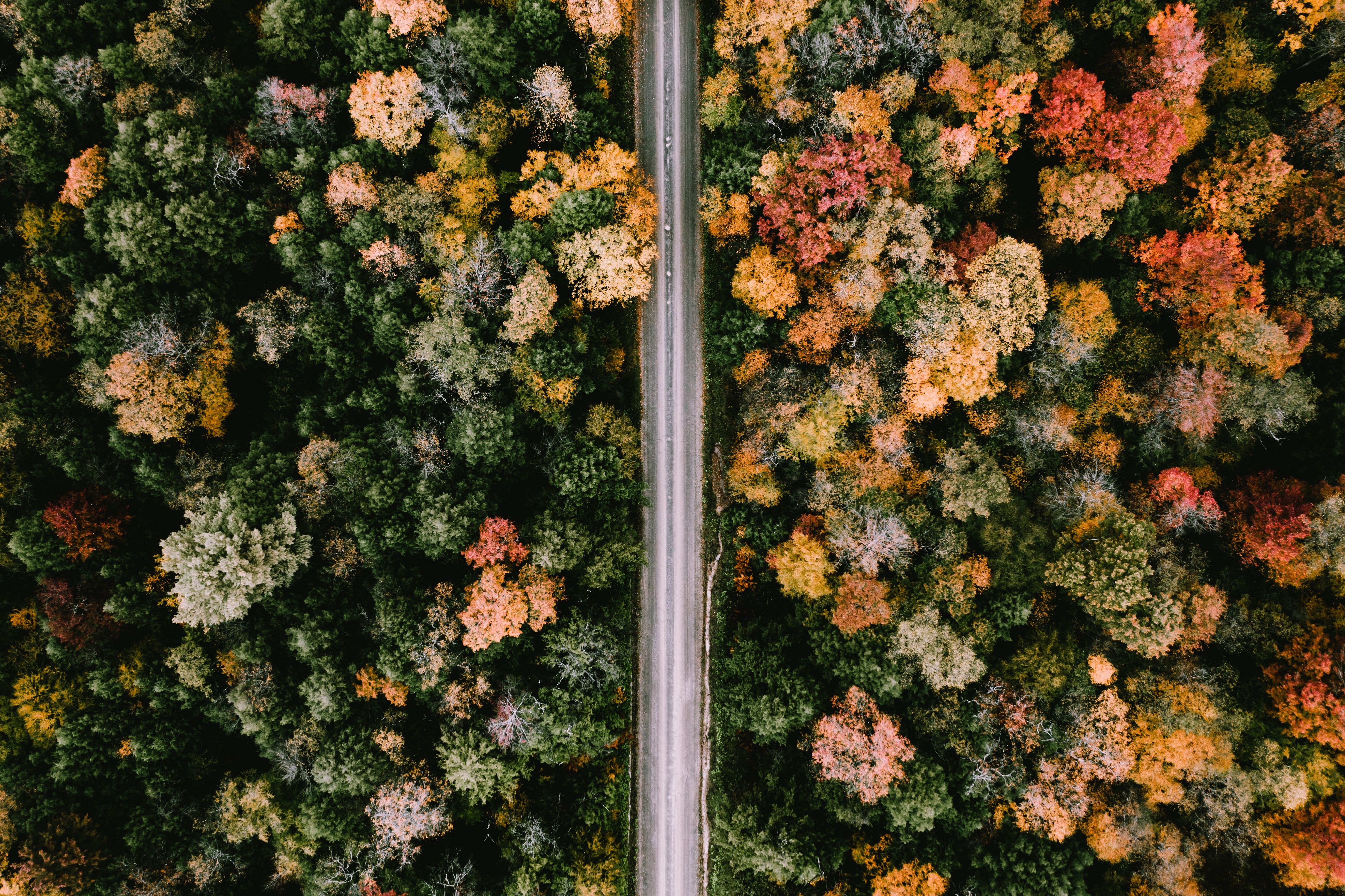 秋にアレゲニー国有林を切り開く道路