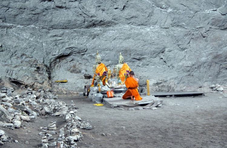 タルン・ロッド・ヤイ内の祭壇で功徳を積む僧侶。写真提供者: ジョン・マクマホン