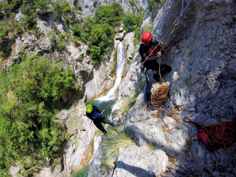 アイリス アドベンチャーでは、キャニオニングにはベーシックとエクストリームの 2 つのレベルがあります。高さ 55 メートルの滝の近くで懸垂下降したり、高さ 10 メートルの崖から飛び降りたり、ツェティナ川に 20 メートル懸垂下降したりするなど、あまりにもクレイジーな (しかし完全に楽しい) ことはしたくない場合は、基本的なキャニオニング オプションを選択できます。しかし、一度この冒険に参加すると、気が変わって楽しいことに参加できるような気がします。