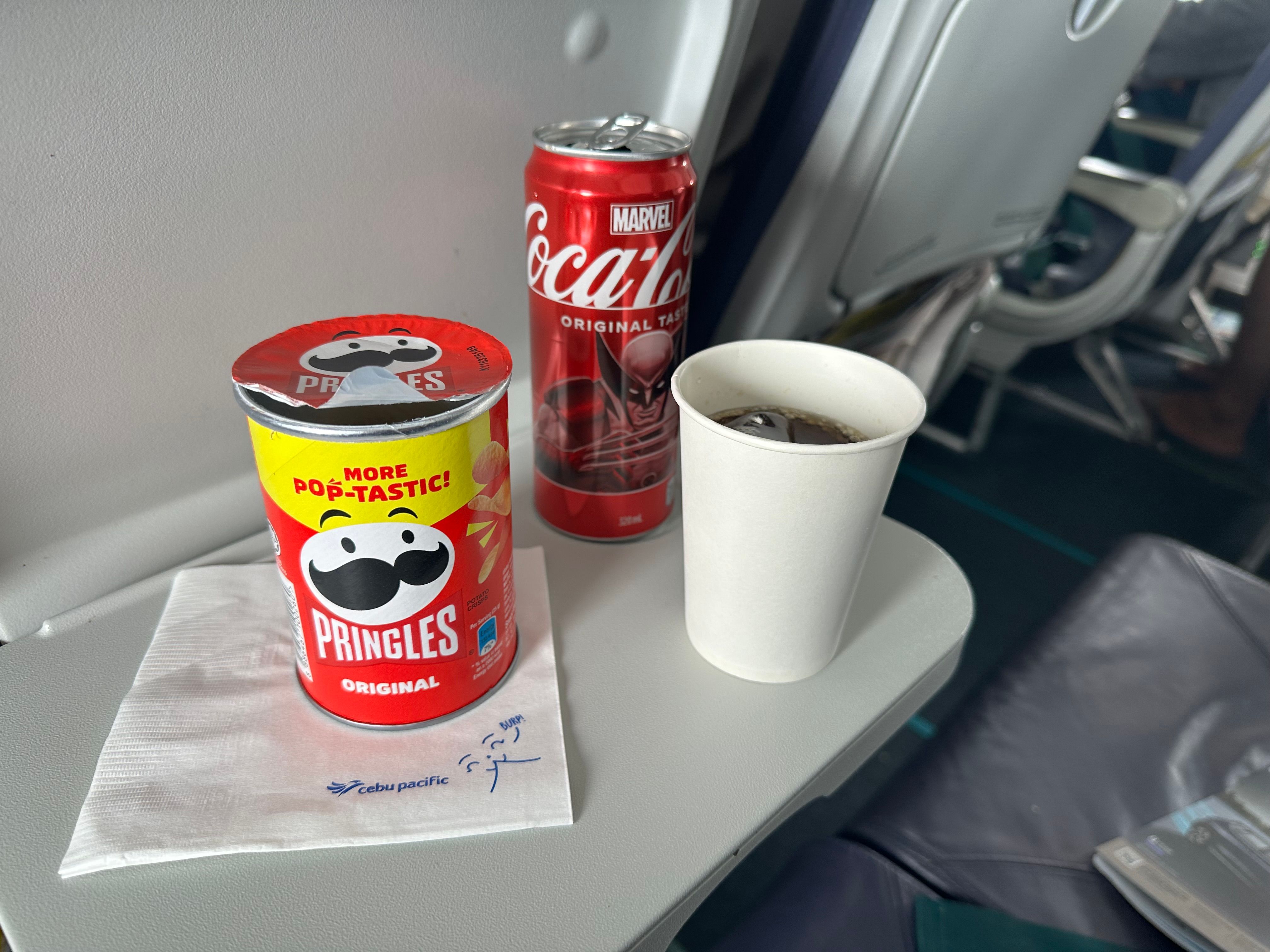 シートベルトのサインは、降下の上部の数分前までオフになりませんでしたがキャビンクルーそのような短い時間の窓にもかかわらず、彼らが事前に注文したスナックや飲み物を人々に連絡させるために行動に飛びました。航空会社は、よく計画されたメニューとバンドルされた選択肢を使用することでそれを容易にします。私にとっては、Php170($ 3)のための飲み物といくつかのプリングルでした。