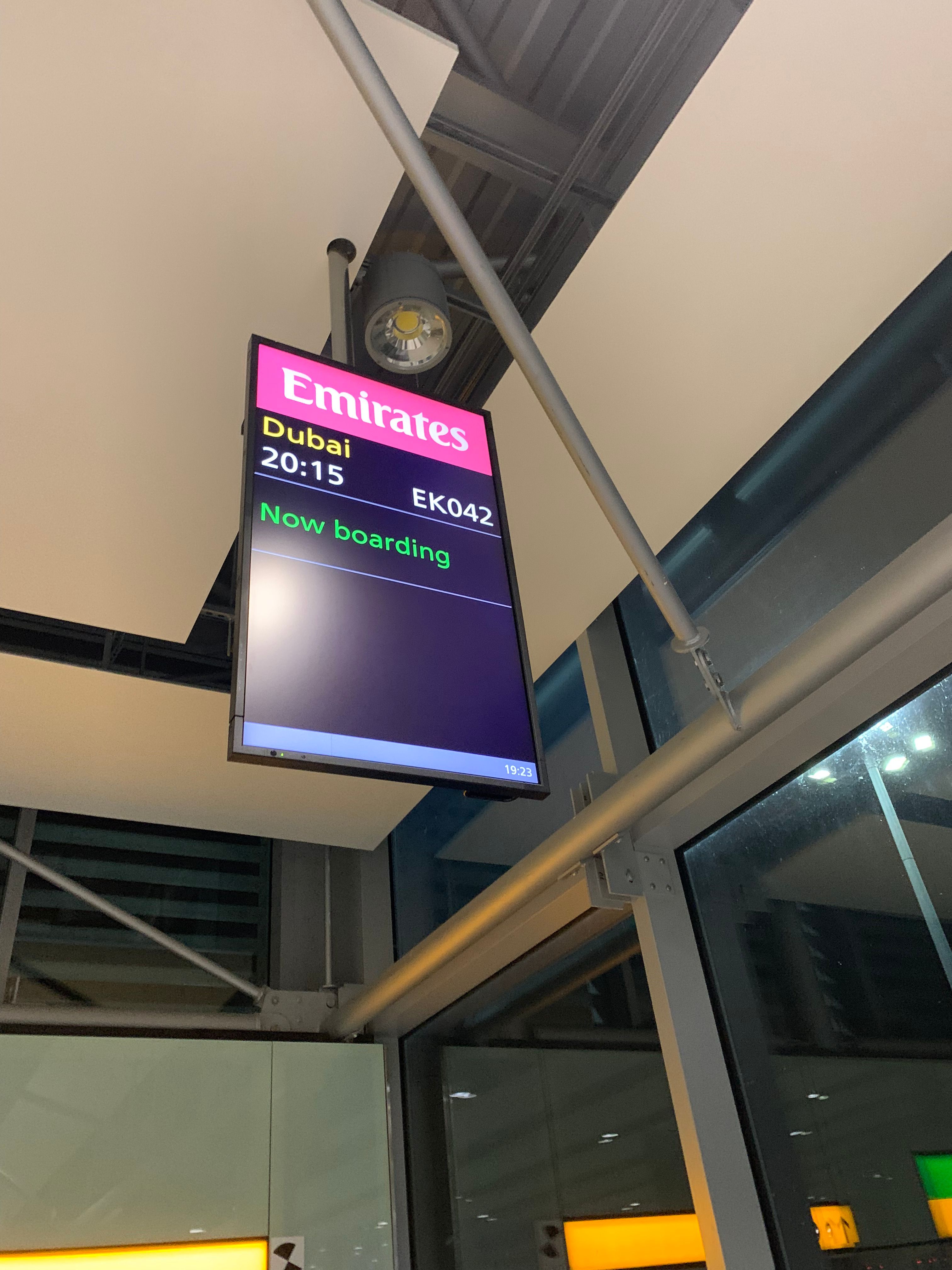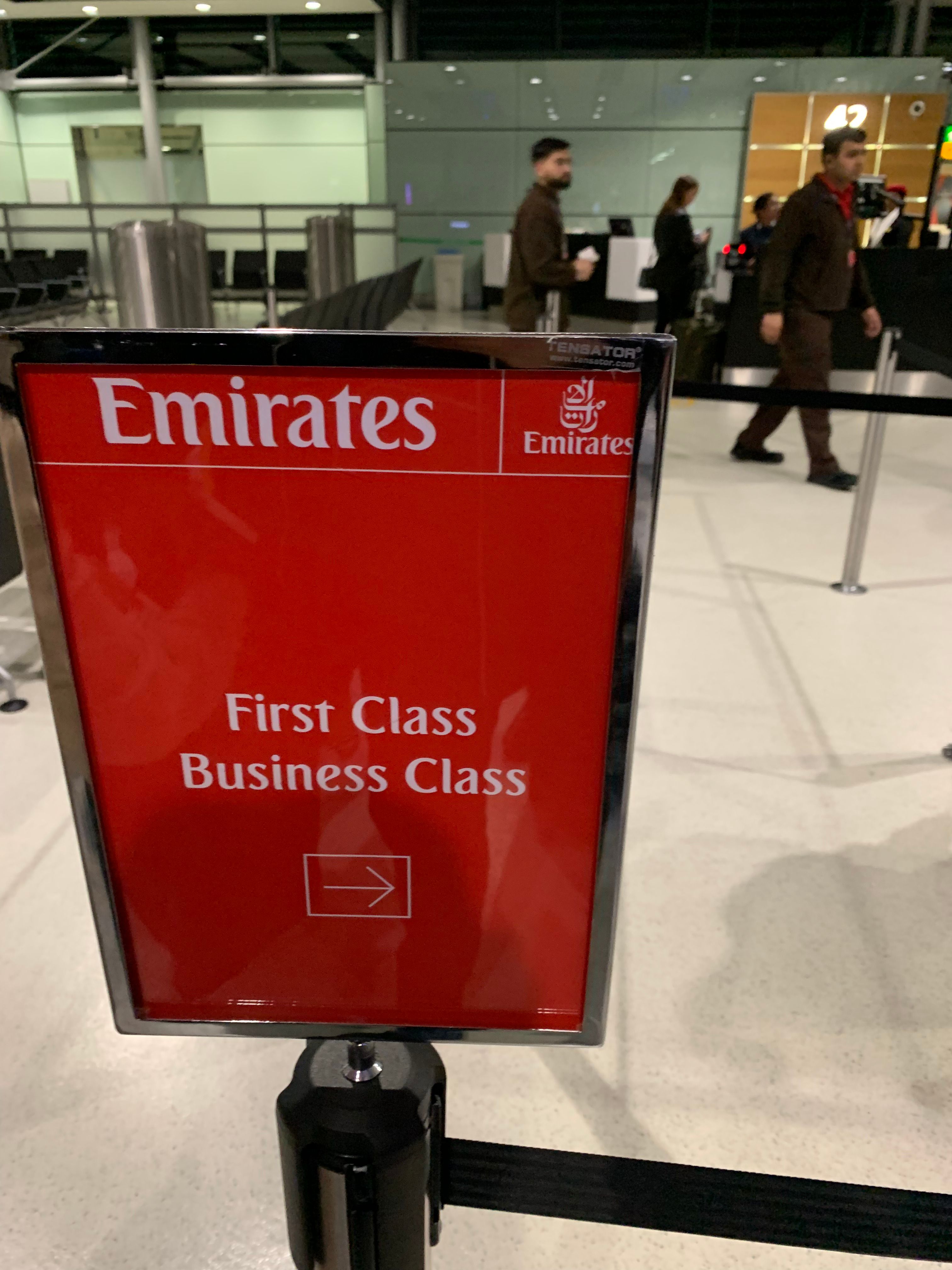 ゲートでの搭乗は出発の 1 時間前に始まりましたが、飛行機がほぼ満席だったことを考えると、これは良かったです。ただし、ゲートには十分なスタッフが配置されており、ファーストクラスとビジネスクラスの乗客、およびエミレーツ スカイワーズのシルバー、ゴールド、プラチナ会員向けに別のセクションが用意されていました。
