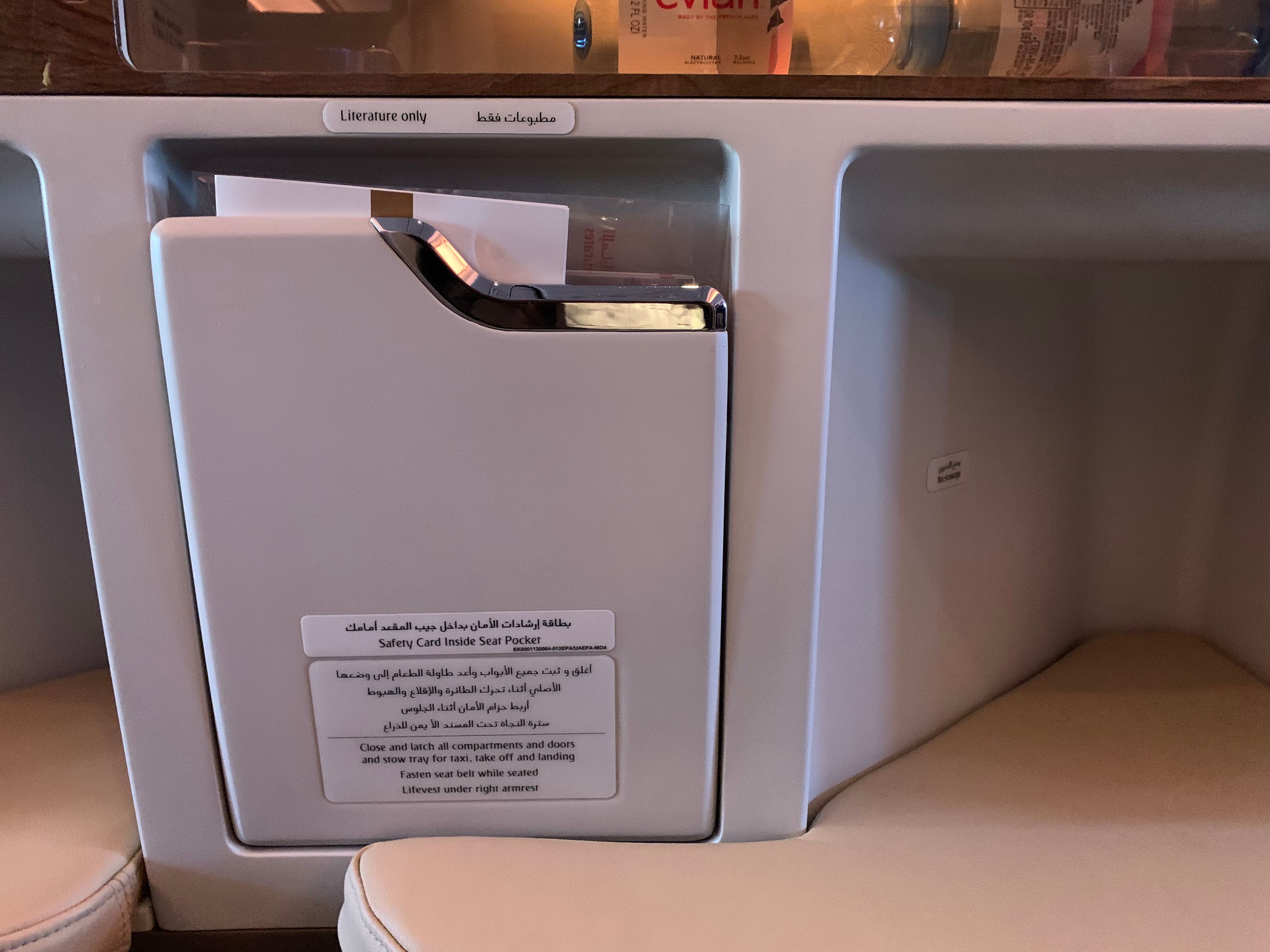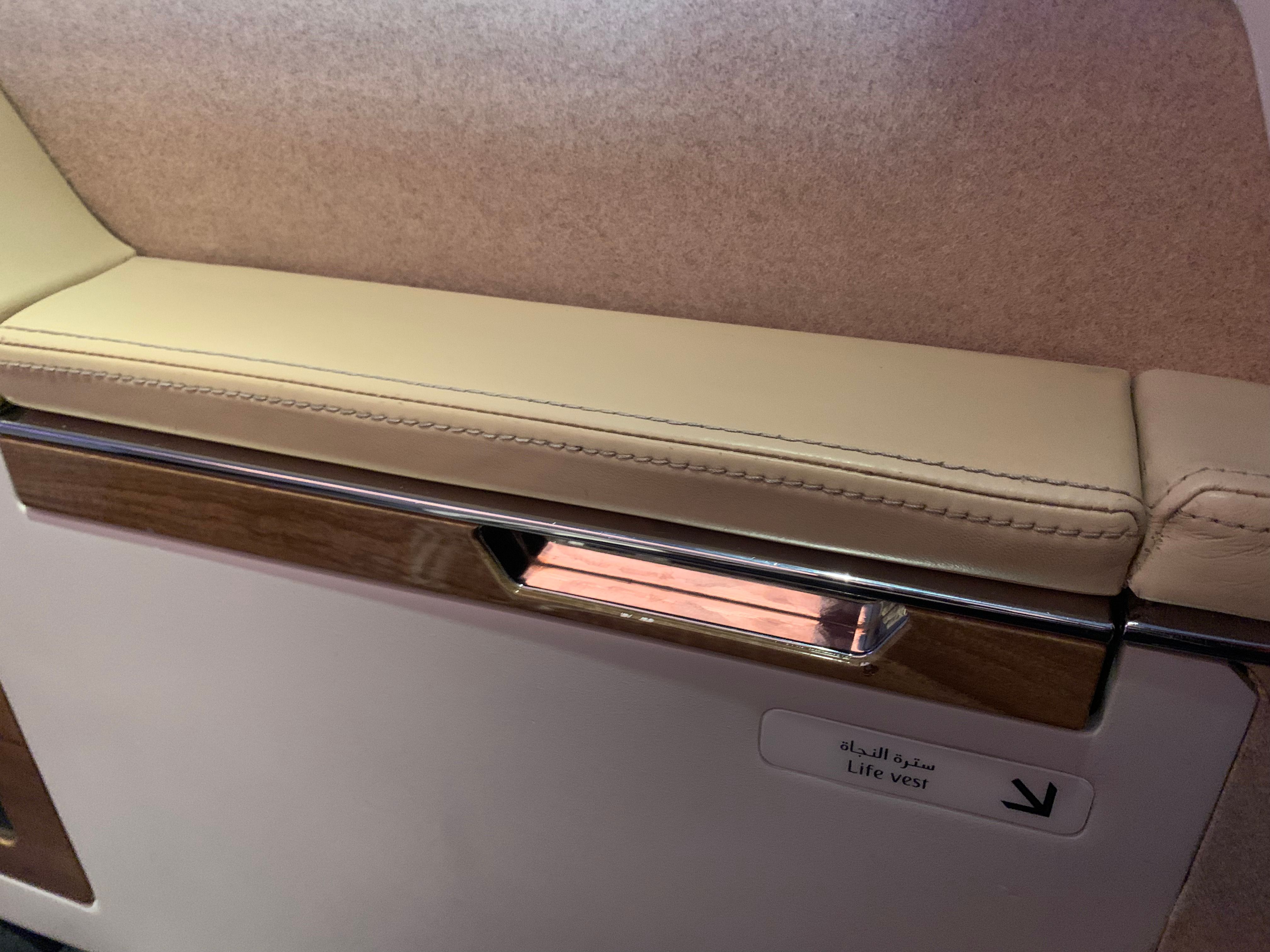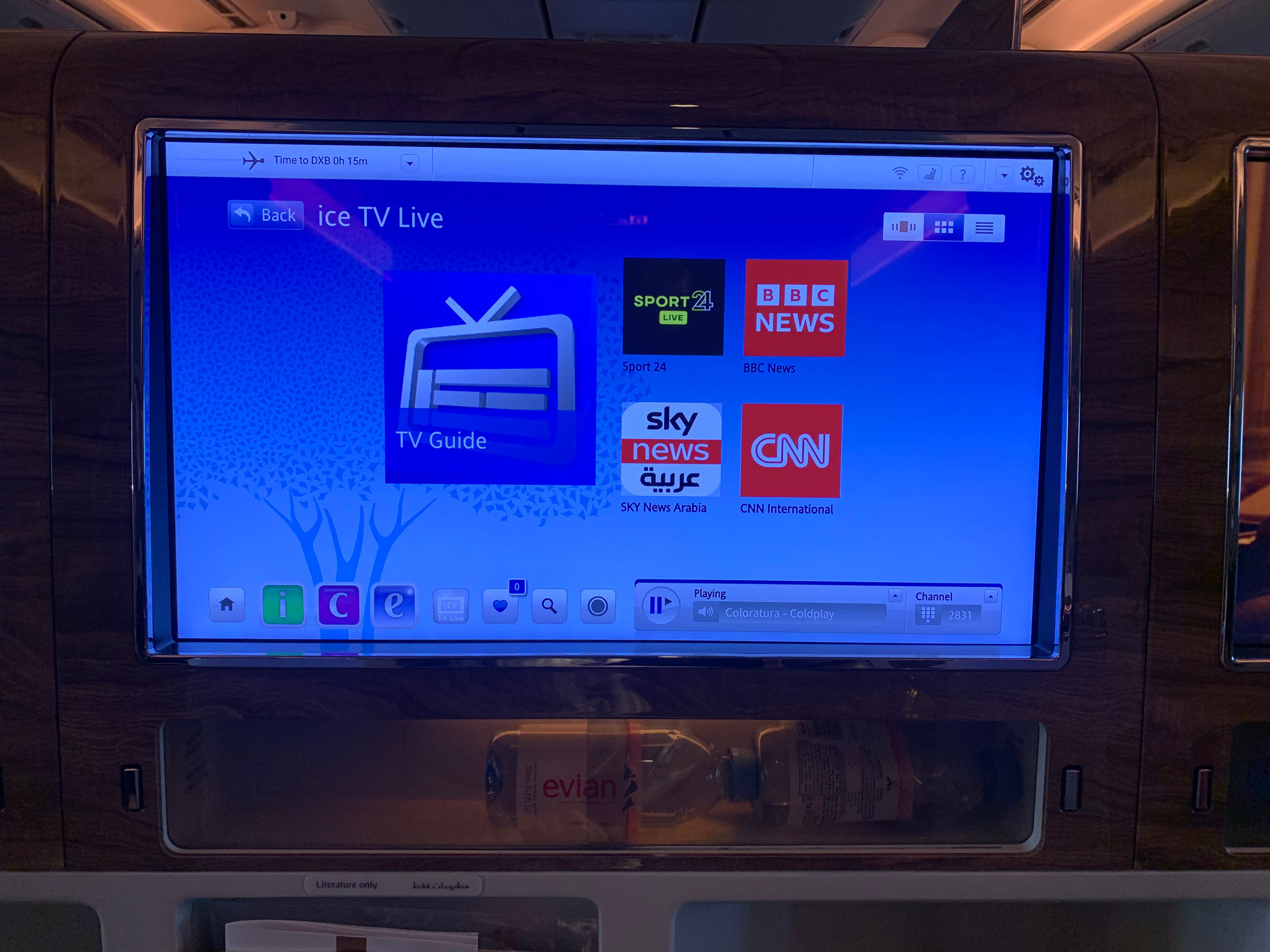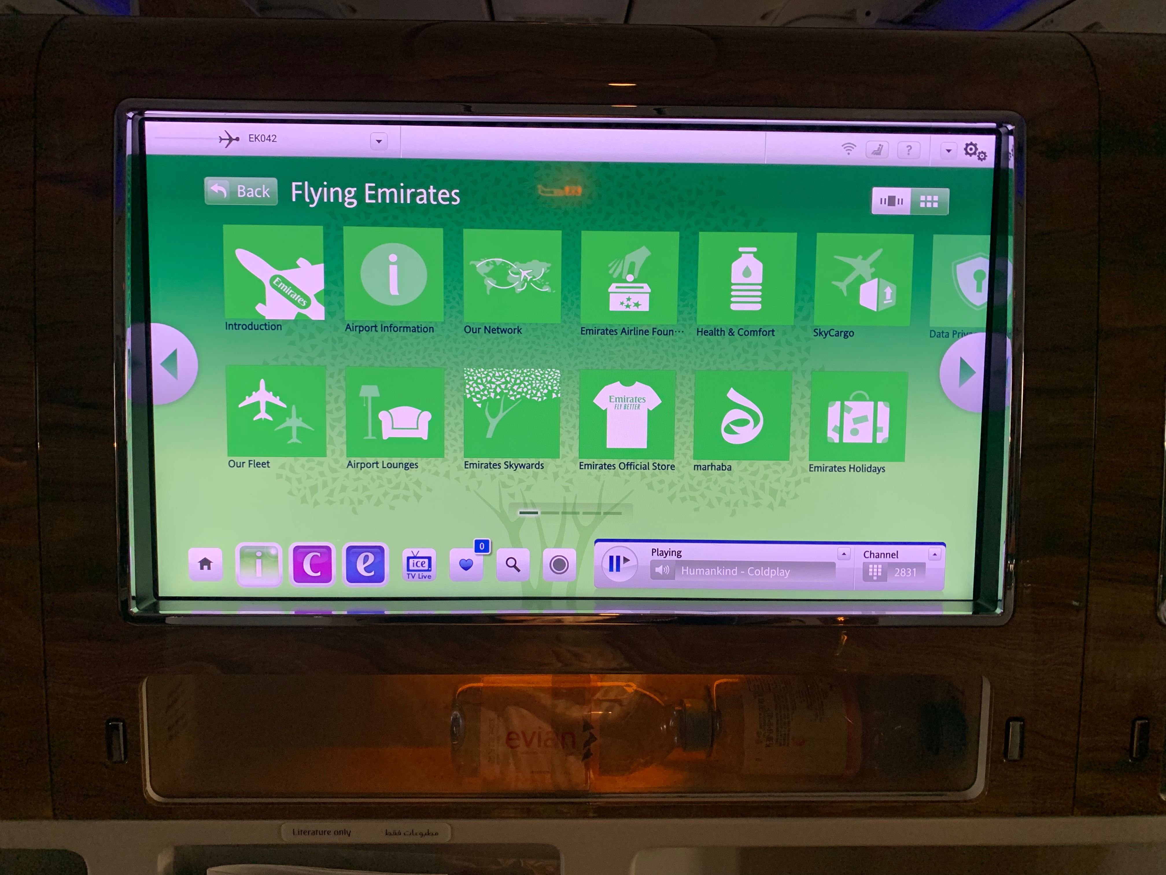 エミレーツ航空の頻繁な利用者として、乗務員はすでに乗客の詳細をシステムに登録していたので、紹介の際に私は名前で挨拶されました。また、座席とその機能の見学を希望するかどうかも尋ねられましたが、私の場合はその必要はありませんでした。その後すぐに、香りの良いホットタオル、アメニティキット、メニュー、ワインリストが届きました。