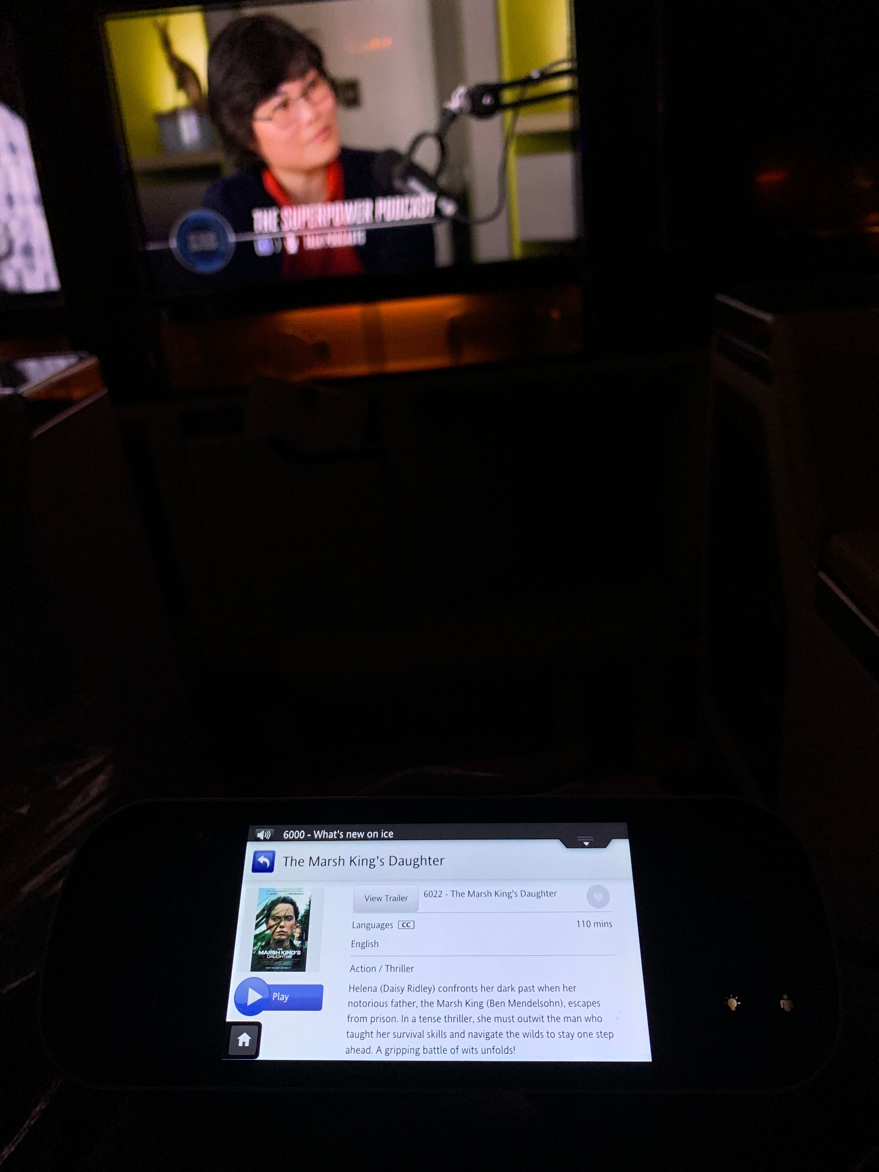 私が旅行を決めた時点ではその便は満席だったため、選べる座席は限られており、機内中央列の2-3-2レイアウトの10Eを選択しました。これは業界のビジネスクラスとしては珍しい構成ですが、古い 777 でこの製品を何度も飛行させてきましたが、私は常に快適なフライトを体験できました。したがって、私は新しい 777 ビジネスクラスのキャビンを試すことに興奮していました。