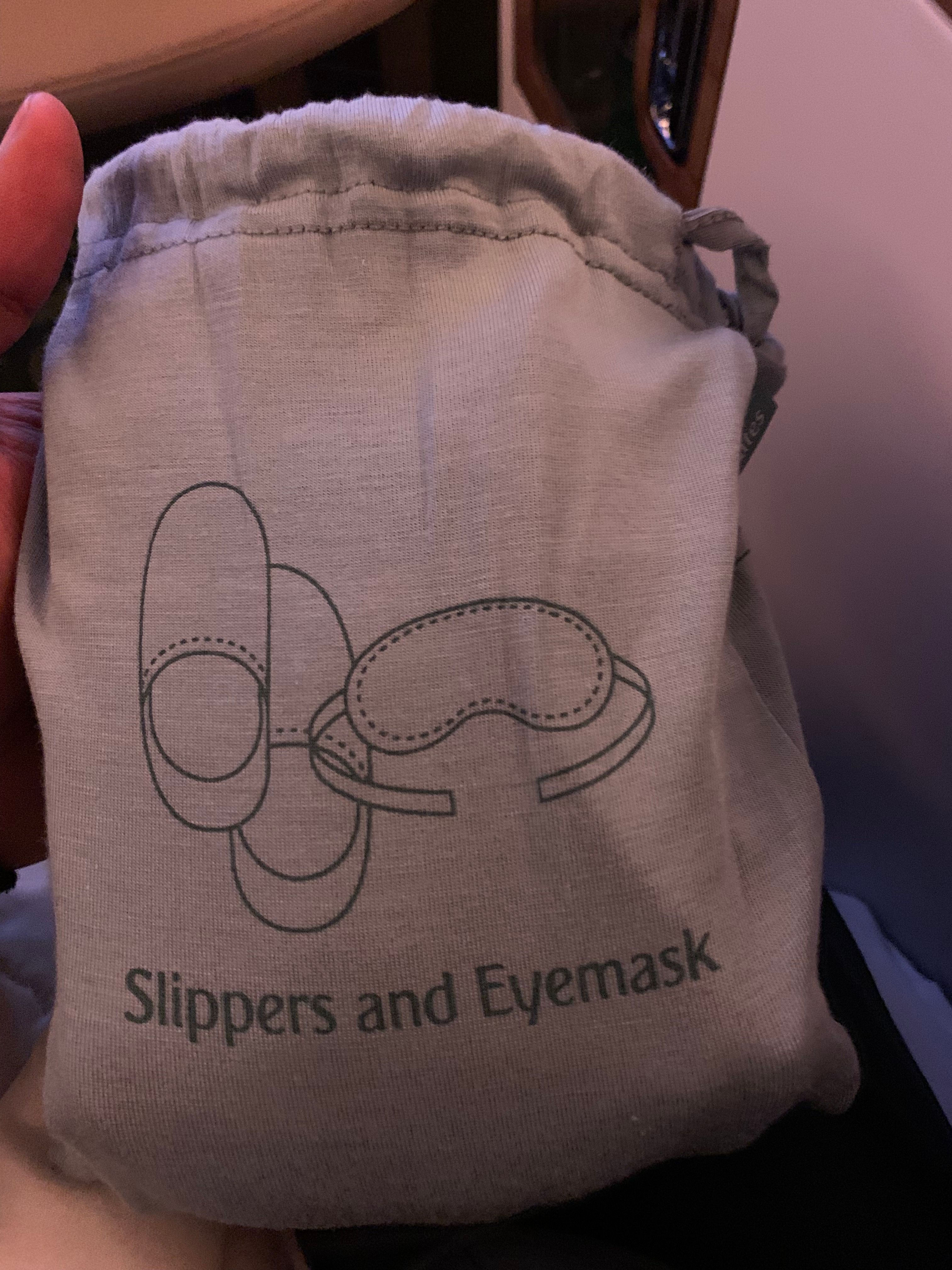 デンタルキット、ヘアコーム、ハンドクリーム、生理用品などのその他のアメニティは、すべてのフライトの機内化粧室にあります。すべての乗客には、アイマスクとスリッパが入ったポーチも渡されます(以前は、乗客にはスリッパの代わりに快適なウールの靴下が提供されていました)。