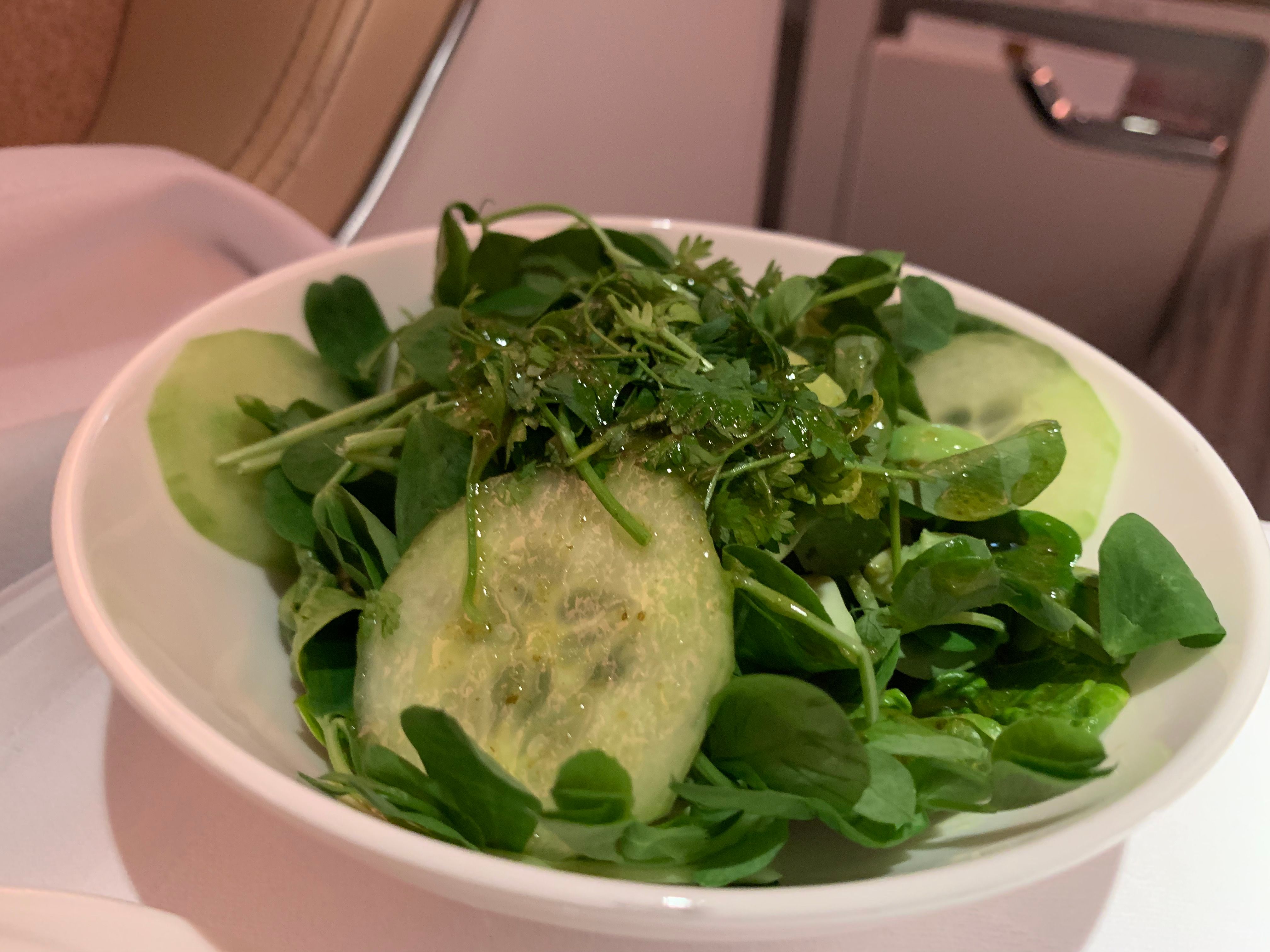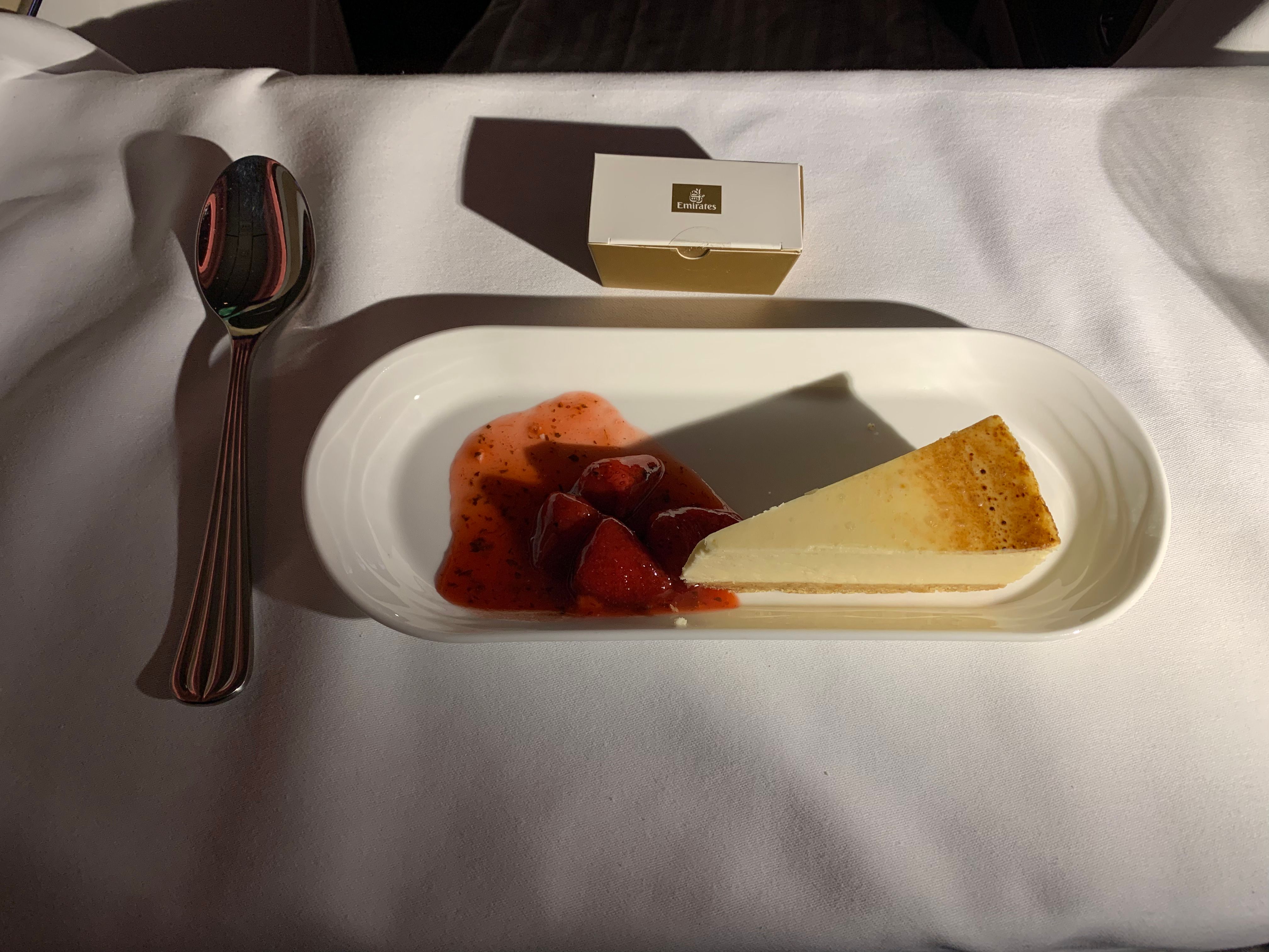 食べ物は美味しく、素晴らしいプレゼンテーションと金属製のカトラリーが提供されました。エミレーツ航空の機内食のもう一つの特徴は、食事の量が常に適切な量であることです。量は乗客がもっと食べたいと思うほど少ないわけではありませんが、乗客が食事を終えるのに苦労するほど多いわけでもありません。