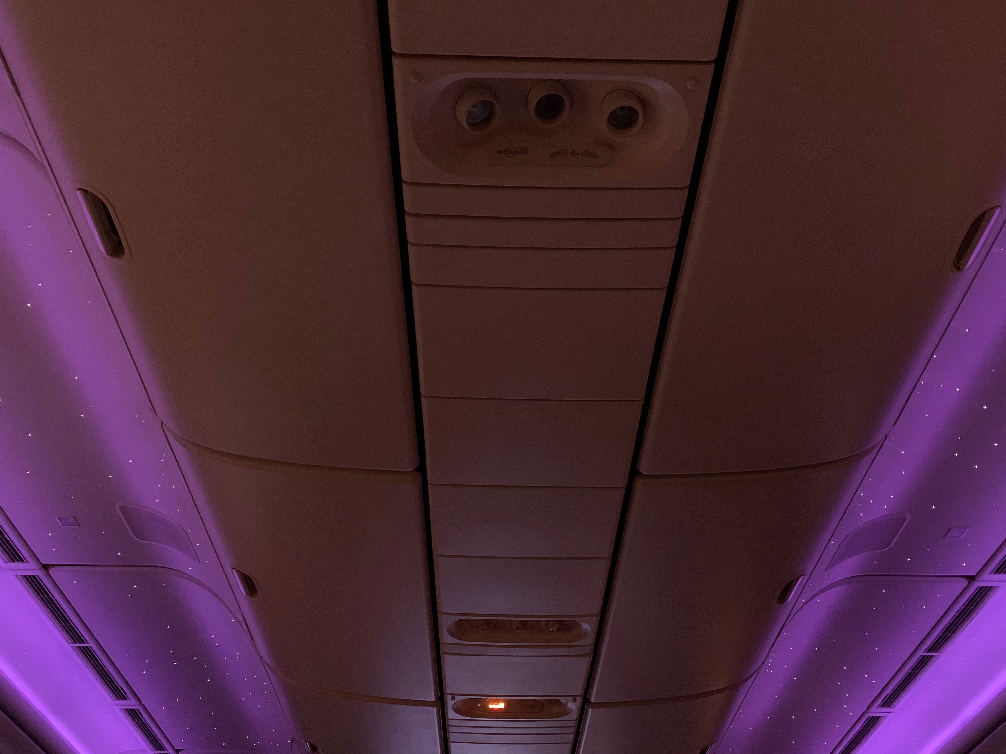 各座席には独自の頭上の温度制御ノズルと読書灯が付いています。ただし、各座席の横には読書灯もあります。