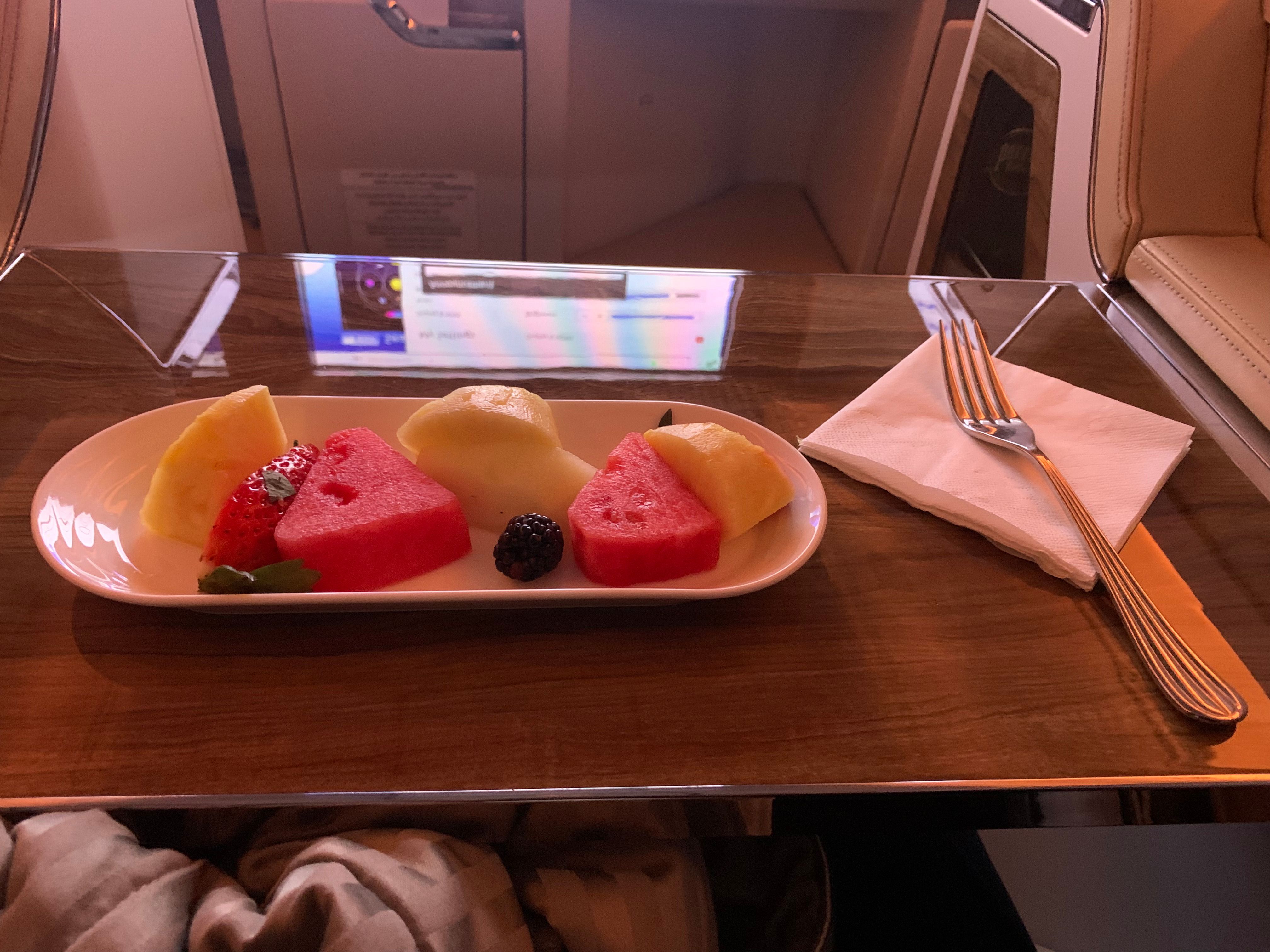 また、乗務員が着陸前のミニ朝食として私のために間に合わせのフルーツプレートを用意してくれたという事実は、エミレーツ航空の客室乗務員チームのサービスの卓越性を示しており、乗客のリクエストに応えるために彼らがこれまで以上に喜んで対応する姿勢を示しています。
