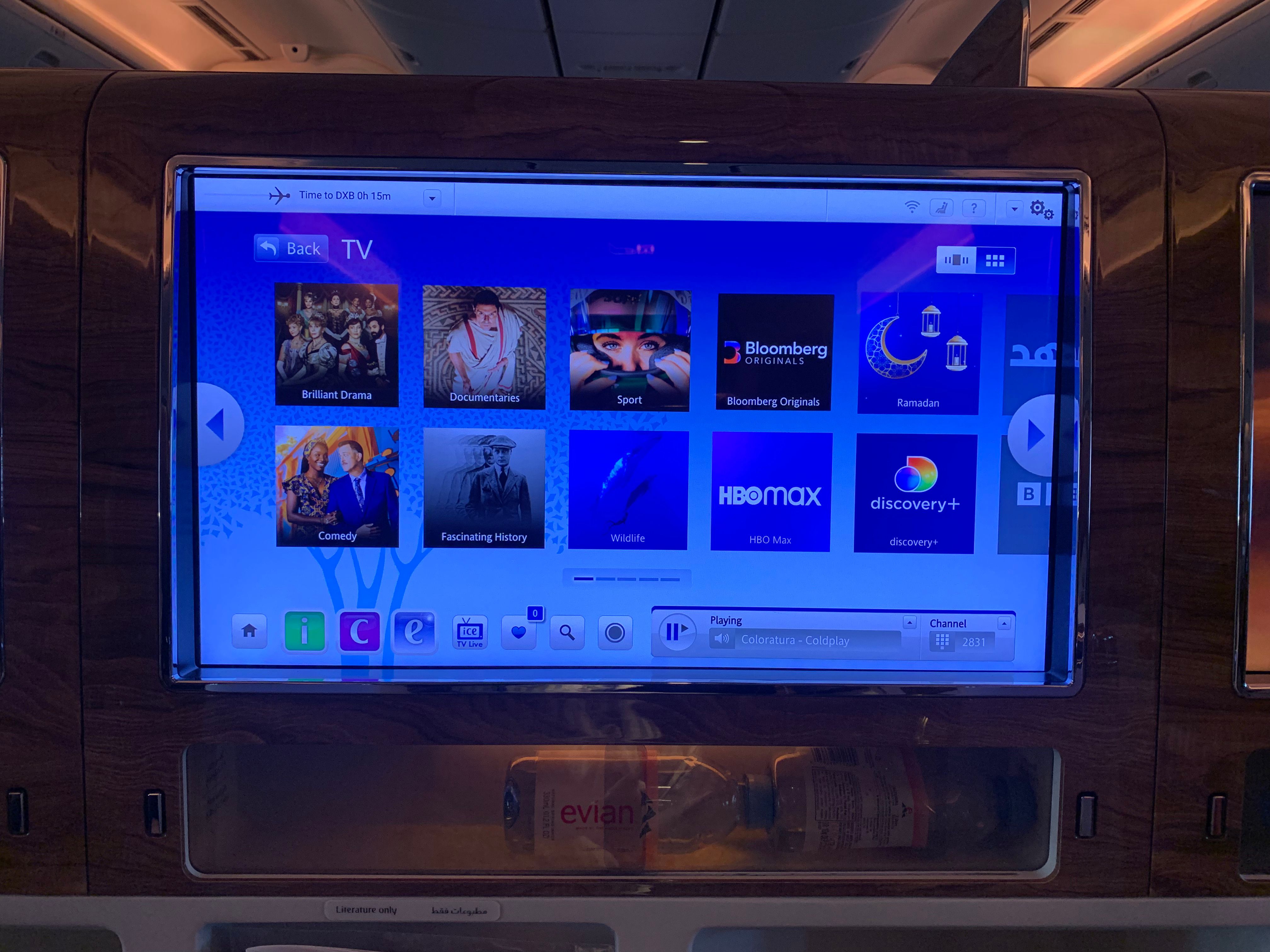 エミレーツ ICE には、新旧の幅広い映画、テレビ番組、音楽のほかに、HBO Max、BBC、シャヒド ストリーミング サービスの受賞歴のあるコンテンツもあります。さらに、乗客は航空ショー チャンネルを視聴することもでき、フライトとその進行状況に関する印象的な詳細が表示されます。さらに、乗客は高解像度の下方および前方カメラを使用して外部の光景を楽しむことができます。
