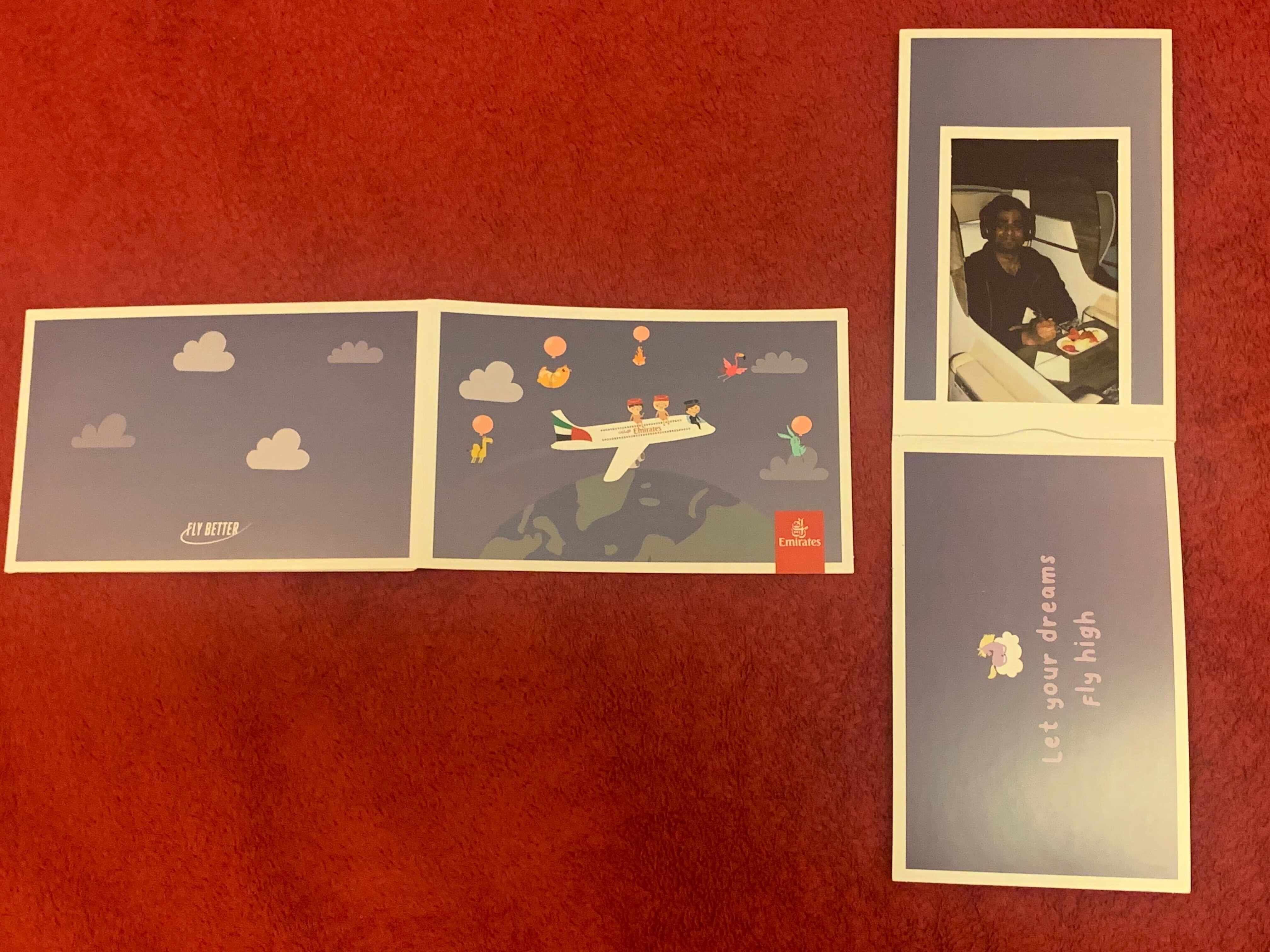 エミレーツ航空を利用するときの私の伝統であるように、私はポラロイド写真を撮らなければなりませんでした。これは、すべての旅行クラスのすべての乗客に無料で提供されるエミレーツの名物です。これらの写真はかわいいフレームに入れられ、乗客がお土産として持ち帰ることができるため、このような小さなことでフライトがさらに思い出深いものになります。