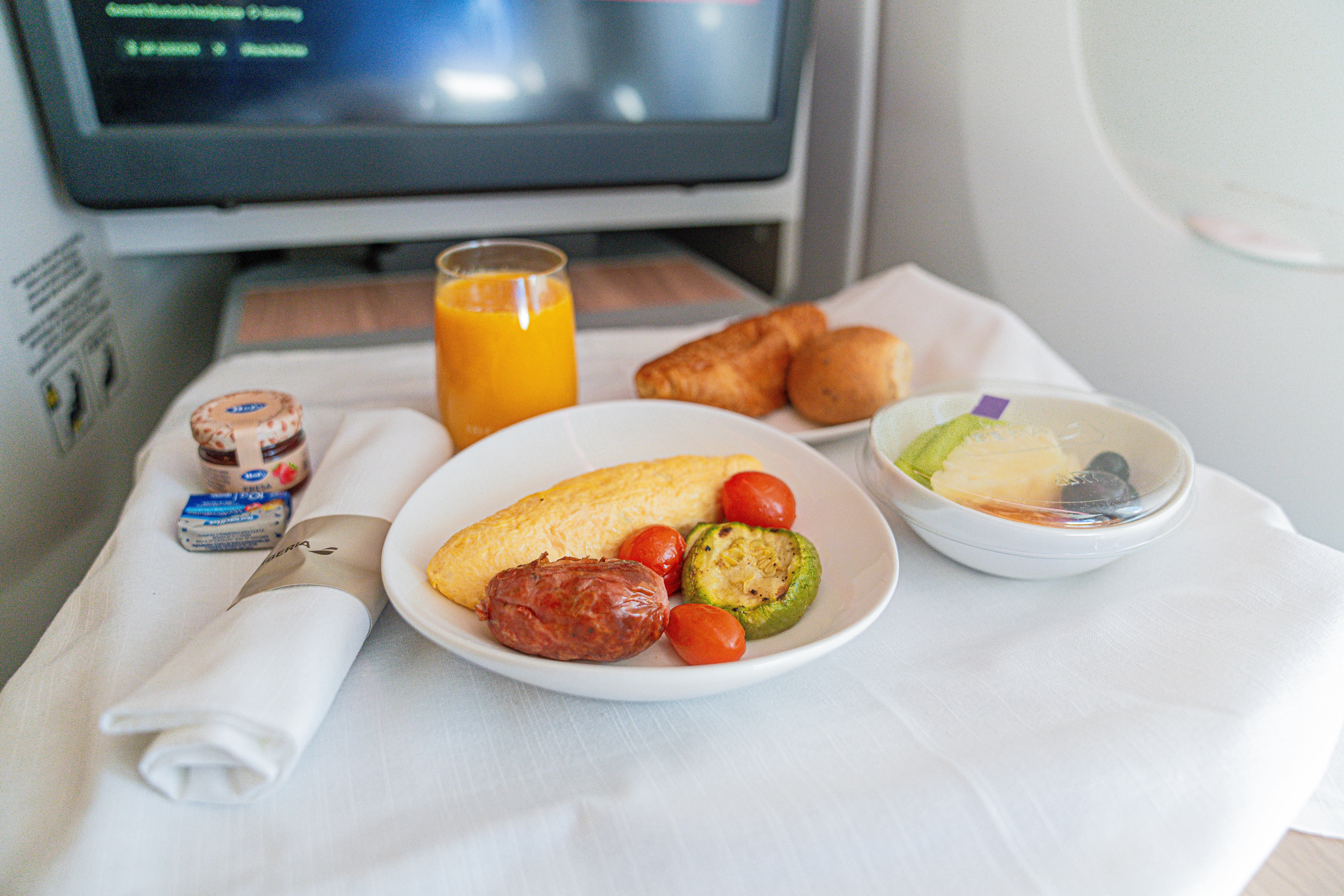 目が覚めたとき、乗組員が朝食を準備していたので、キャビンは再び食べ物の匂いがしました。ありがたいことに、私はよく眠っていて、マドリードに到着すると地面に走る準備ができていました。朝食には、次のオプションがありました。