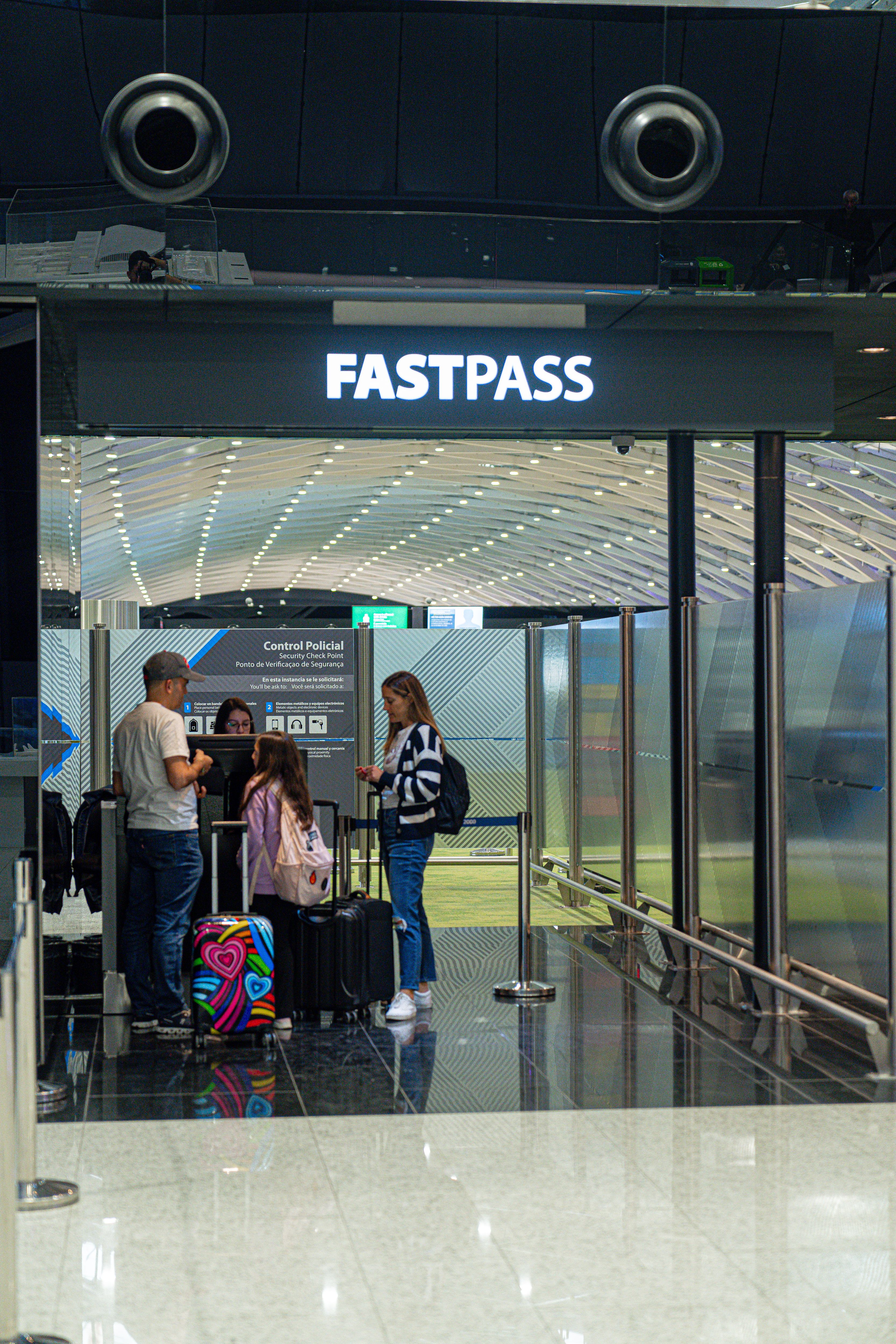 2階に着いたら、私は速いトラックの車線を通り抜けました。このラインは非常に迅速で、パスポートコントロールの排他的なブースに導かれ、待ち時間はありませんでした。 5〜7分以内に、私はセキュリティに到達し、エアサイドでした。