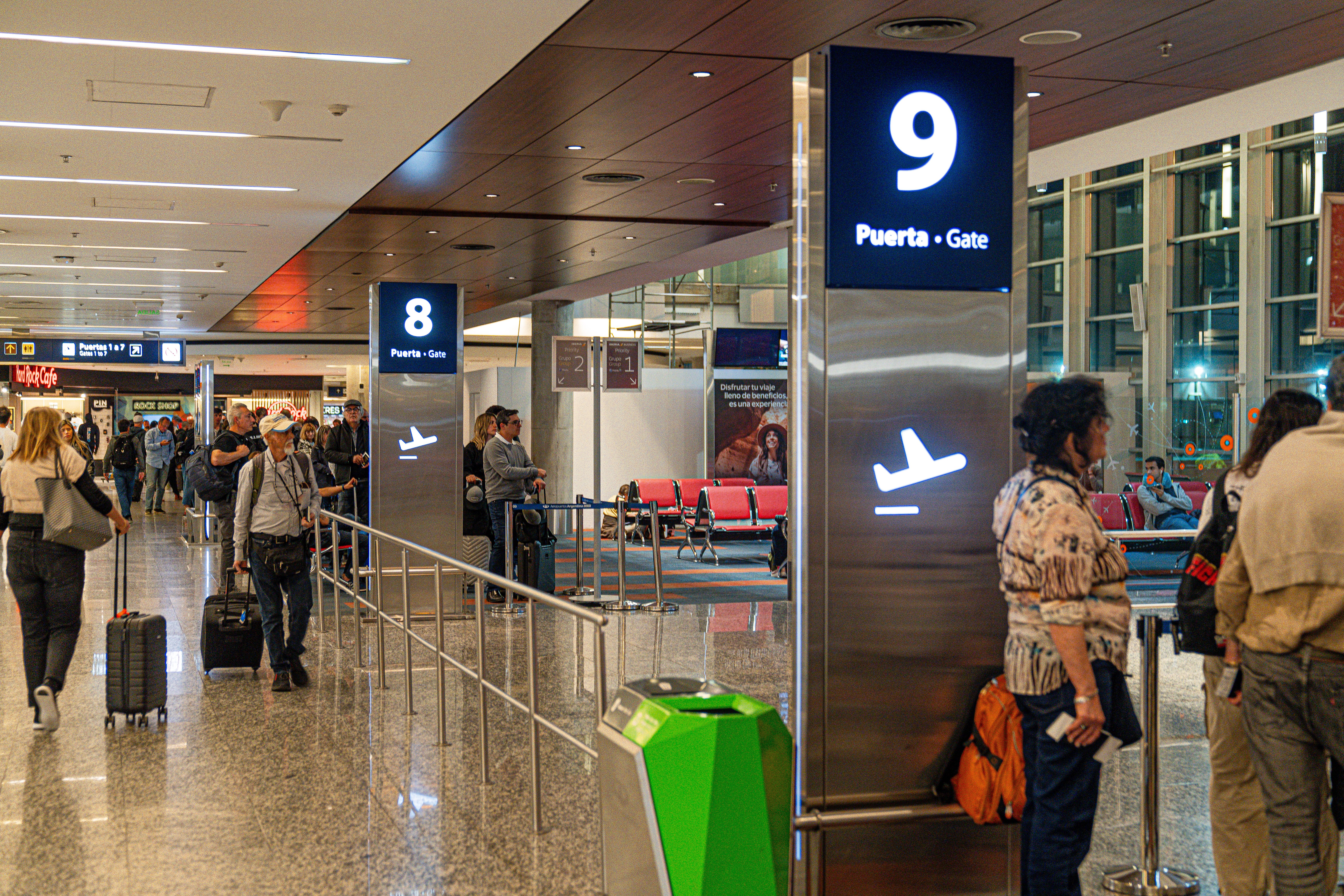 今年のある時点で、チェックポイントは私が1月にそこを飛んだときとは異なるものだったため、Ezeで新しいセキュリティとパスポートの制御エリアがオープンしました。すべてがよくマークされており、セキュリティは第2レベルにありました。エスカレーターをセキュリティに上げる前に、スタッフが出席し、乗客のみが2階に行くことを確認するために搭乗券をチェックしていました。
