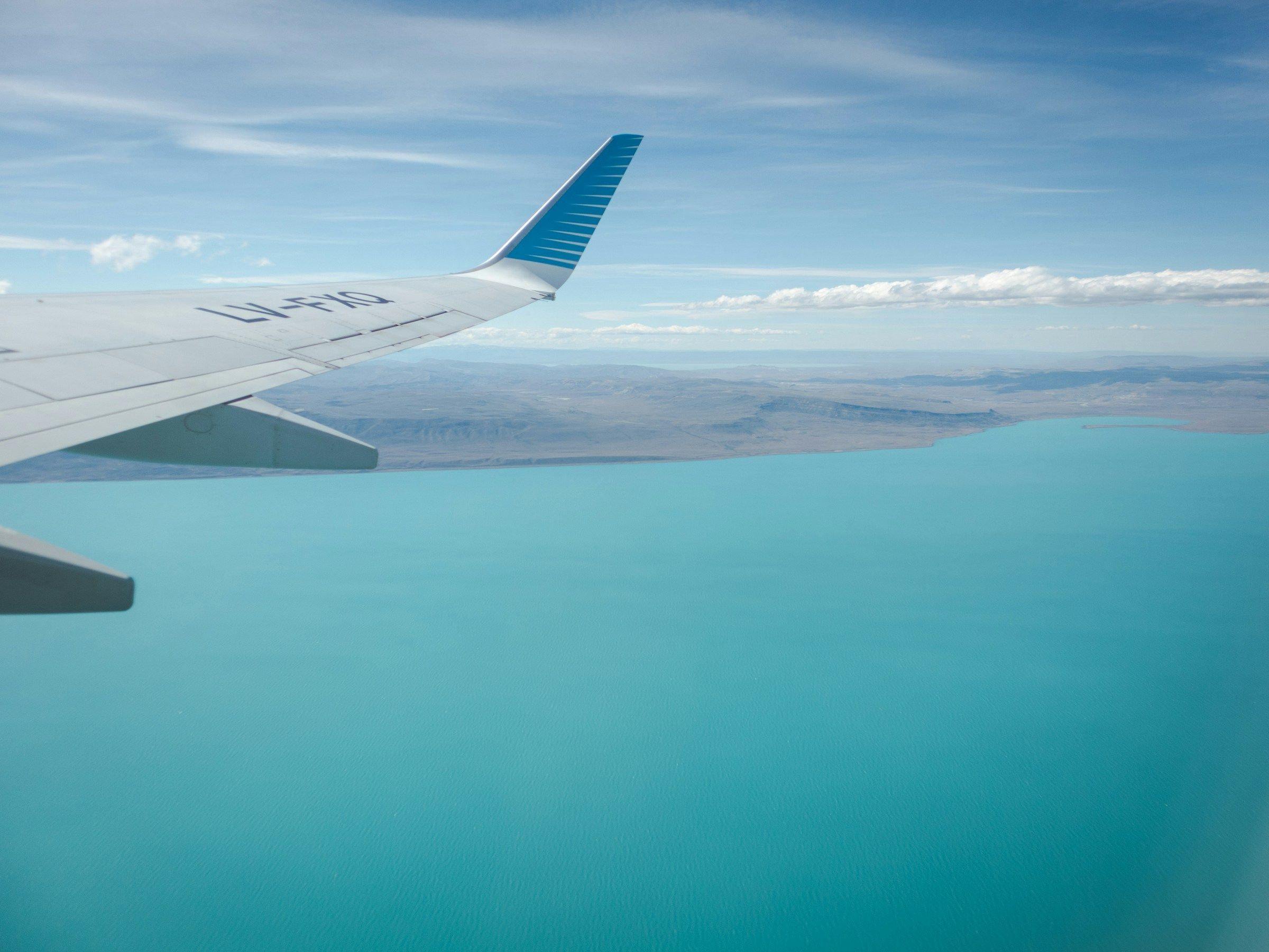 アルゼンチンのサンタクルス州ラーゴアルゼンチーノ上の飛行機