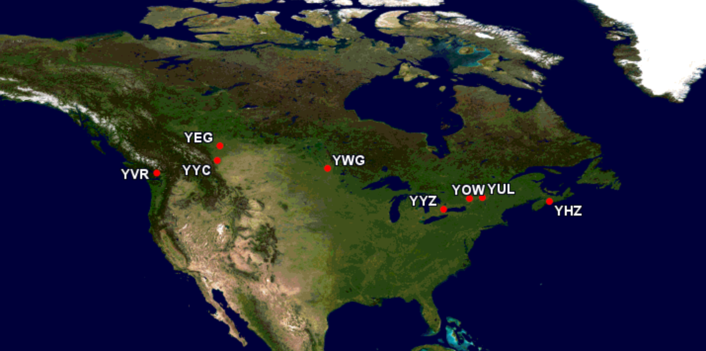 ルートネットワークには、単一のワンストップの旅程、特にモントリオール経由のトロントピアソンからミラノマルペンサへの毎日のフライトも含まれています。 A330-300が運営するフライトAC894/AC895は、カナダの都市に進む前にモントリオールで最初の停留所であり、ヨーロッパから戻ったときにモントリオールに停車します。