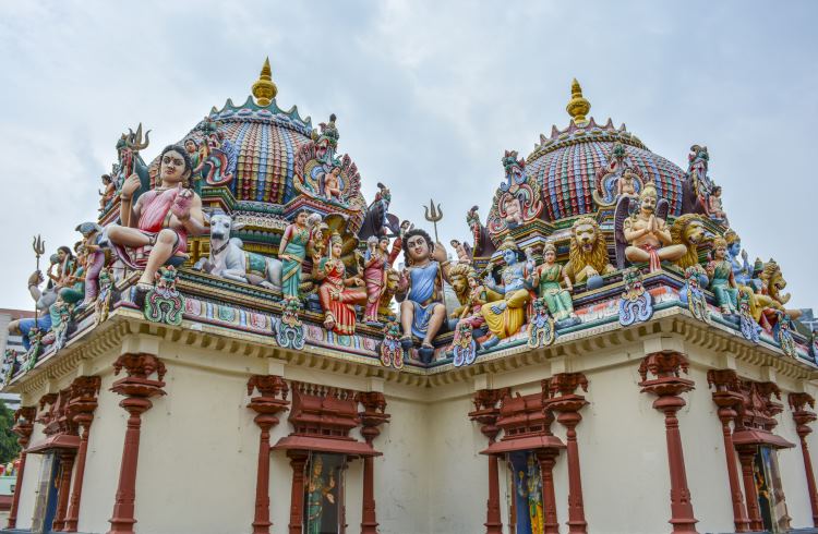 このコミュニティの中心はスリ マリアマンの北 3 km (1.8 マイル) にある活気あふれる地区リトル インディアですが、その心臓はシンガポール最古のヒンズー教の礼拝所であるこの寺院で鼓動しています。 1860 年代に南インドの熟練した職人によって建てられたこの大規模な複合施設は、色彩豊かに装飾されています。
