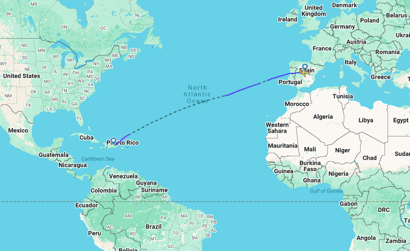 イベリア航空がサント ドミンゴへの定期便を開始する 2 週間前に、プエルトリコのサン フアン (SJU) への便を開始したことは注目に値します。サンファンはカリブ海に位置し、文化的および言語的にラテンアメリカと強いつながりを持っていますが、伝統的な地政学的な意味でのラテンアメリカの一部ではなく、米国の領土です。