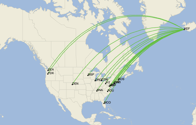米国内のアイスランド航空のネットワークは、来年 6 月中に 15 の目的地に広がります。アイスランド航空の輸送能力から最も恩恵を受けている空港は次のとおりです。