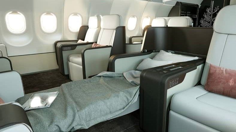 ジェットビジネスのショールームにあるエアバスACJ319インテリアのフルサイズのモックアップは、路上の誰でも見ることができます。 「飛行の感覚を複製する動く雲の景色を示すオーダーメイドの革張りの座席と窓が非常に装飾されています」