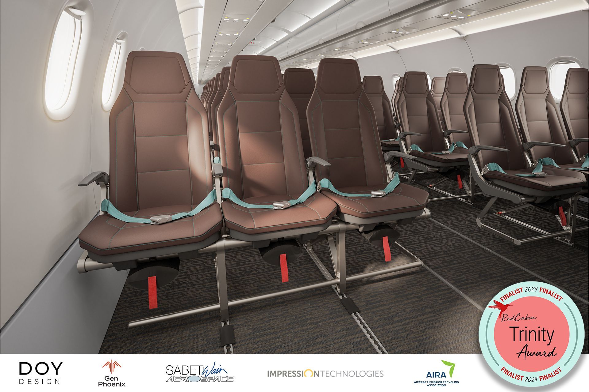 軽量の座席技術により、航空機の製造業者とオペレーターとしてのファイナリストのリストは、船上の体重を減らし、その結果、排出量を削減しようとしています。専門家の審査員団は、Sustainability Conceptsカテゴリの勝者として、Doy Design Limitedの「Ultra Slim Low Carbon Seat」を選びました。円形エコノミーシートの概念は、アルミニウムなどのリサイクル材料を含めることで、埋め込み炭素を70%減らすように設計されています。