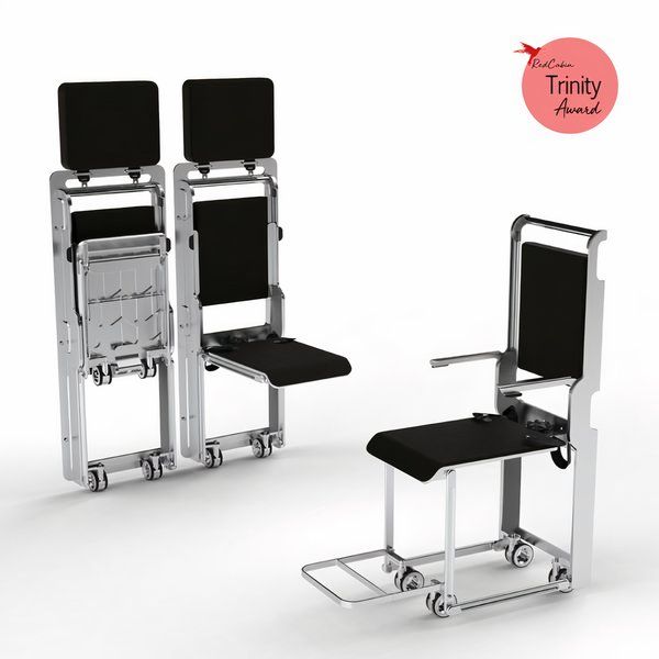 業界の最大の問題の2つを解決しようとしているJ&C Aeroコンセプトの「ジャンプシートデュオ」は、離陸と着陸中の客室乗務員の座席と、モビリティが低下した乗客の機内車椅子の両方として機能します。革新的なデザインは、航空機のコンプライアンスを念頭に置いて作成されました。既存の狭い航空機に簡単に設置して、体重を節約し、威厳のある滑らかな乗客の搭乗プロセスを確保するのに役立つ快適な二重目的のシートを提供できます。